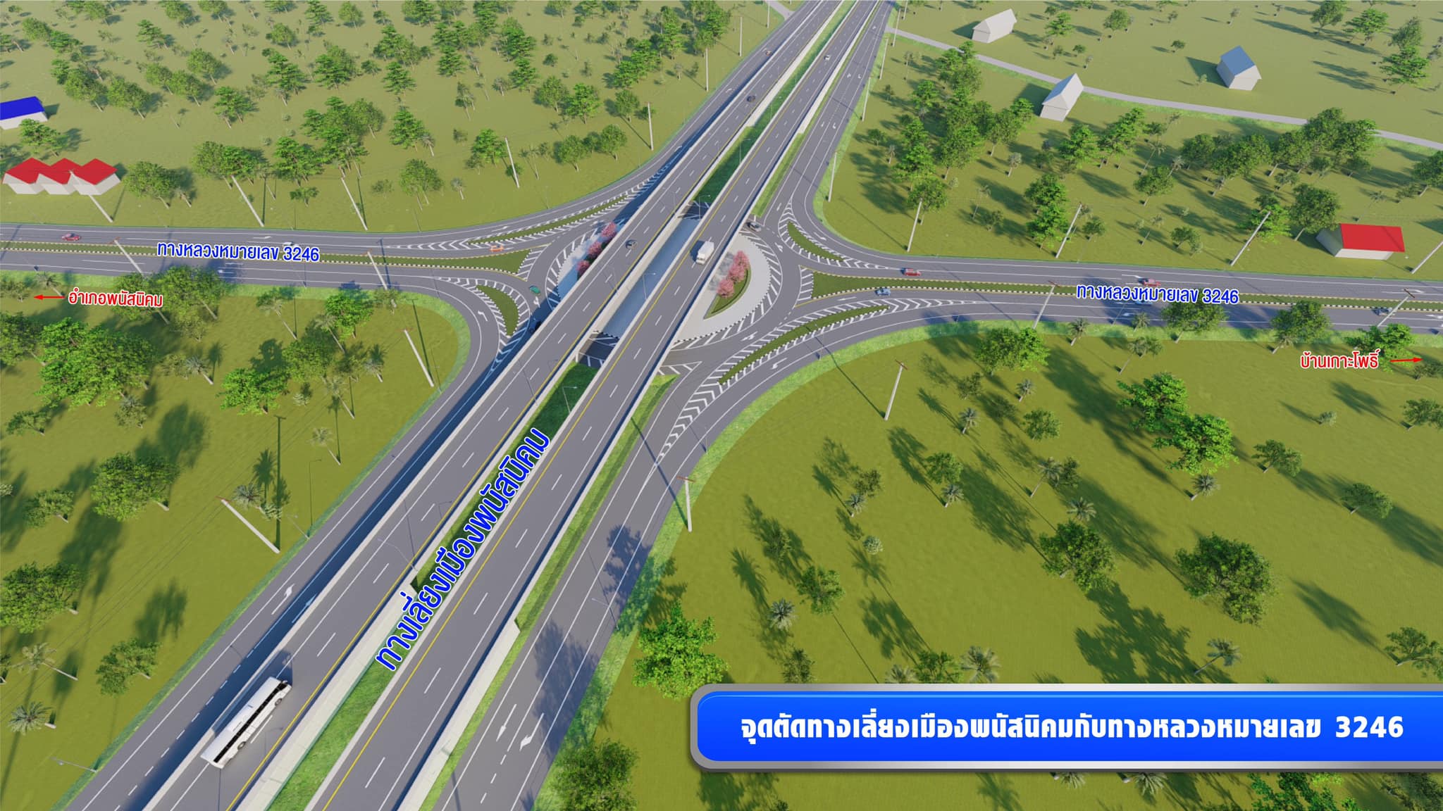 กรมทางหลวงออกแบบทางแนวใหม่สายเลี่ยงเมืองพนัสนิคม จ.ชลบุรี ช่วยบรรเทาปัญหาการจราจร พัฒนาโครงข่ายระบบคมนาคมขนส่งเส้นทางภูมิภาคและประตูการค้าระหว่างประเทศ