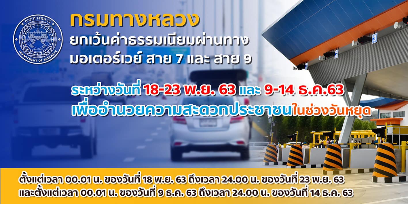 การทางพิเศษแห่งประเทศไทย ยกเว้นค่าผ่านทางพิเศษในช่วงวันหยุดพิเศษต่อเนื่องในเดือนธันวาคม