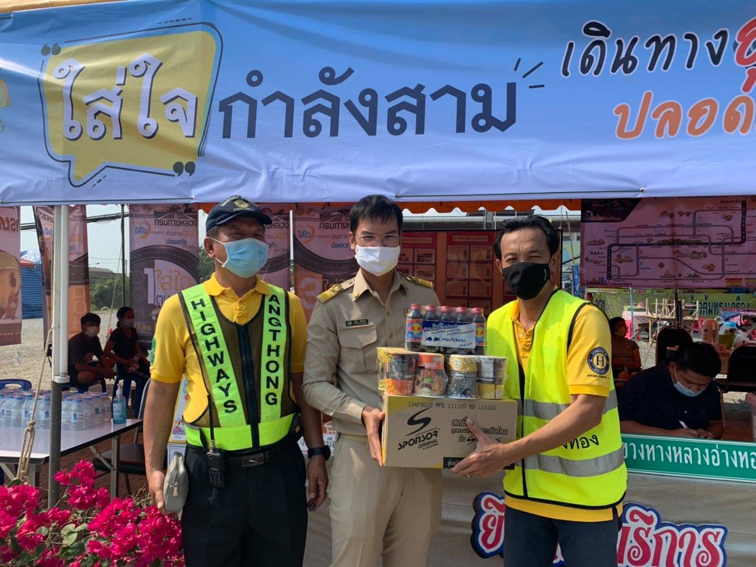 ผู้อำนวยการแขวงทางหลวงอ่างทอง ตรวจเยี่ยม พร้อมมอบเครื่องดื่มและบะหมี่กึ่งสำเร็จรูป ให้กับเจ้าหน้าที่ประจำศูนย์บริการทั่วไทย เทศกาลปีใหม่ 2564