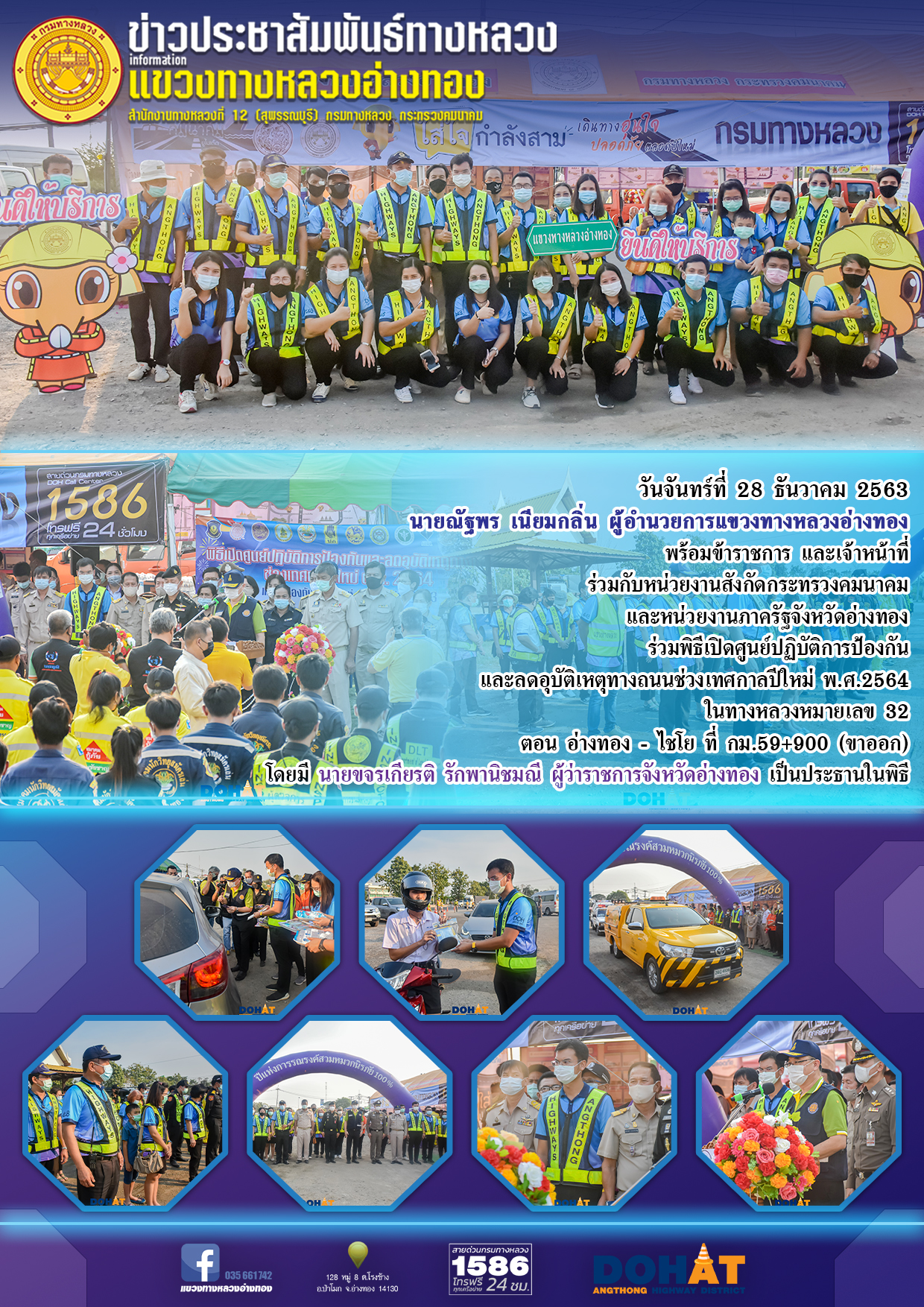 แขวงทางหลวงอ่างทอง เปิดศูนย์อำนวยความสะดวกและปลอดภัยช่วงเทศกาลปีใหม่ 2564