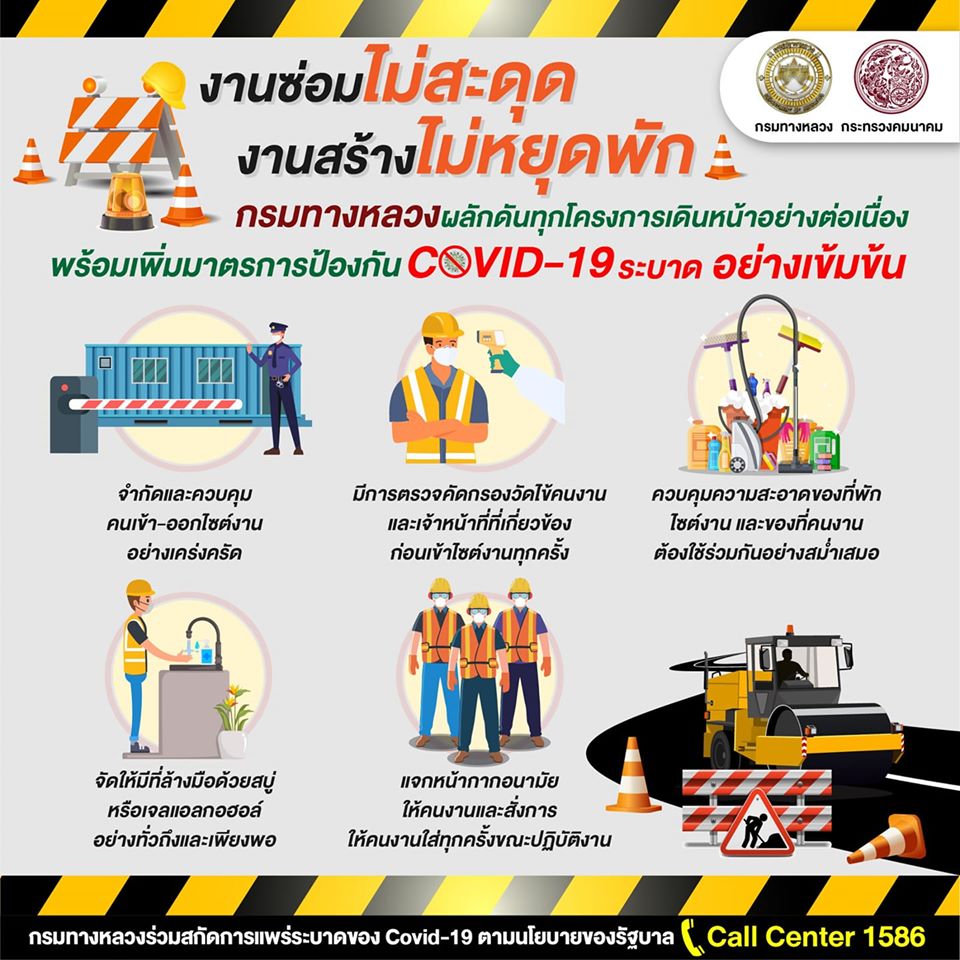 กรมทางหลวงผลักดันทุกโครงการเดินหน้าอย่างต่อเนื่อง พร้อมเพิ่มมาตราการป้องกันCOVID-19 ระบาดอย่างเข้มข้น