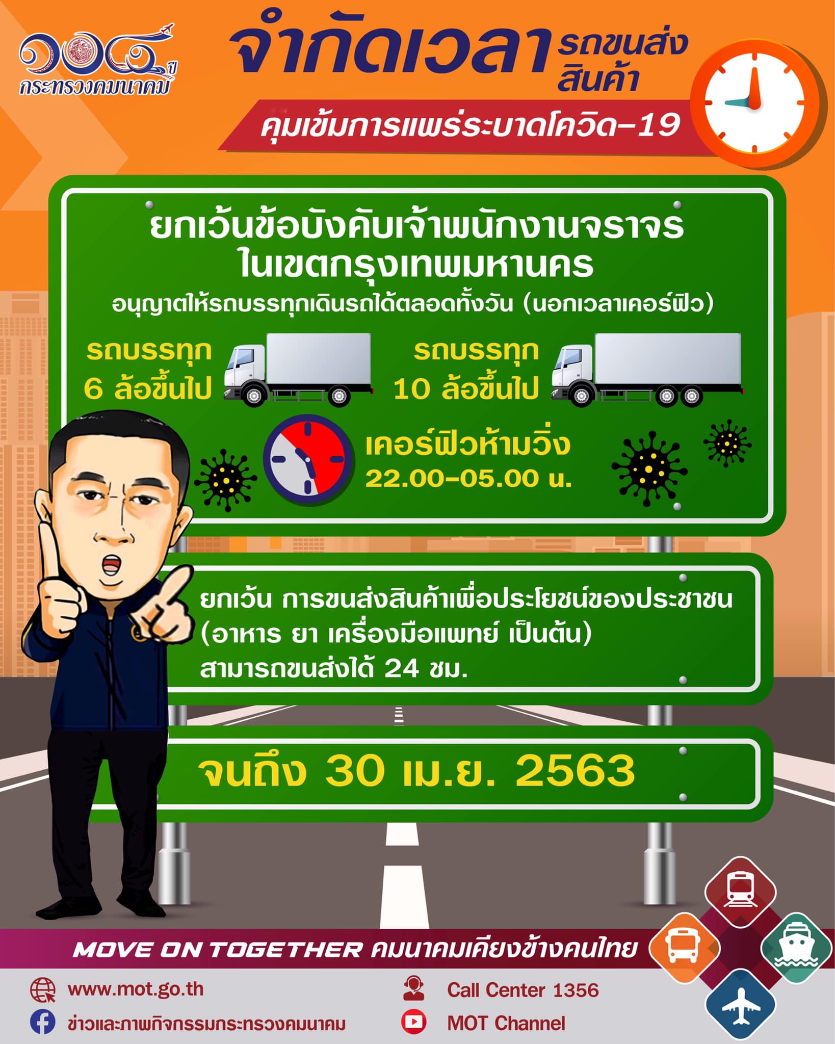 คุมเข้ม!! จำกัดเวลารถขนส่งสินค้า เพื่อป้องกันการแพร่ระบาดโควิด-19