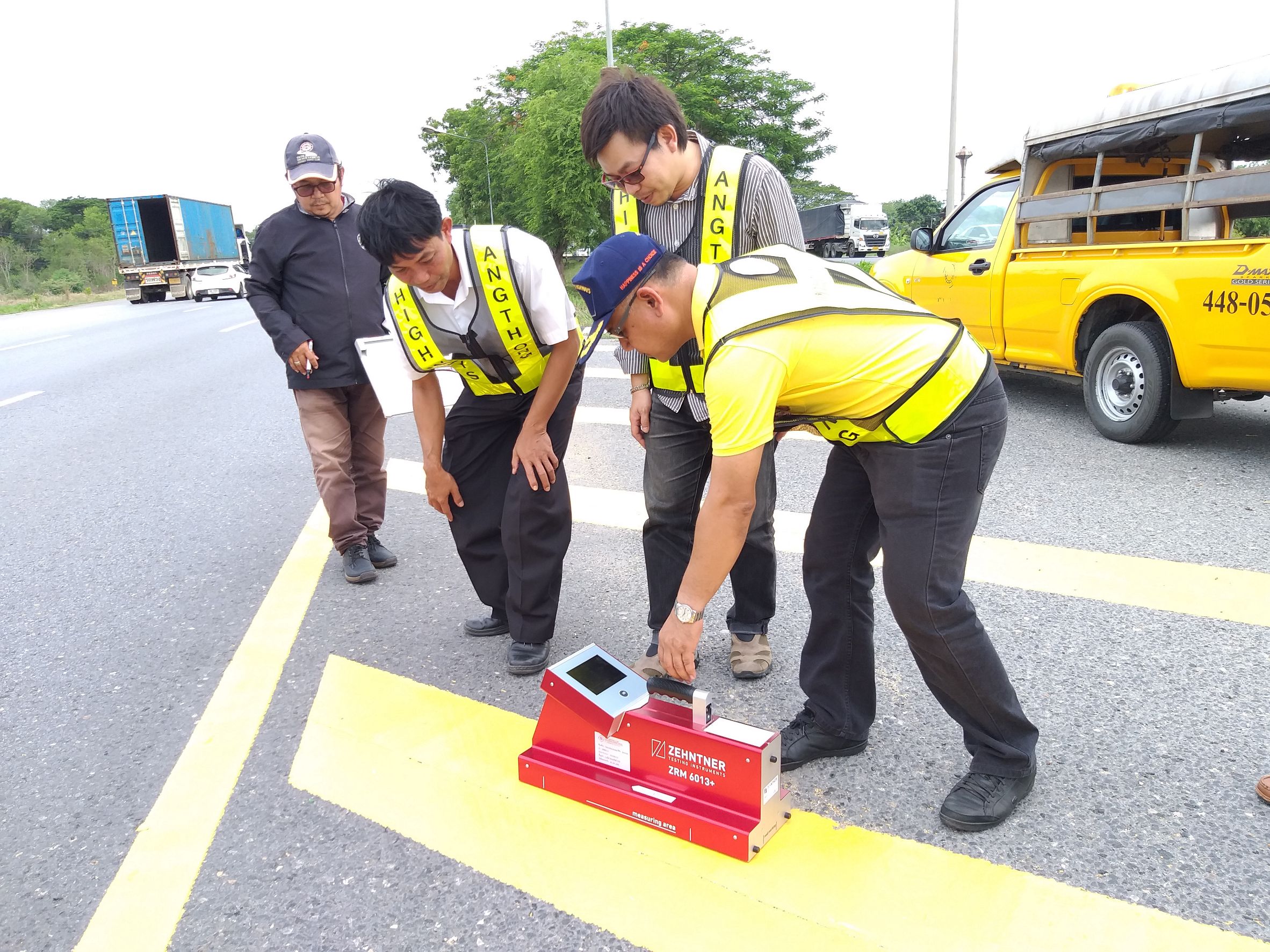 การตรวจรับงานจ้างเหมาทำการตีเครื่องหมายจราจรบนผิวทาง
