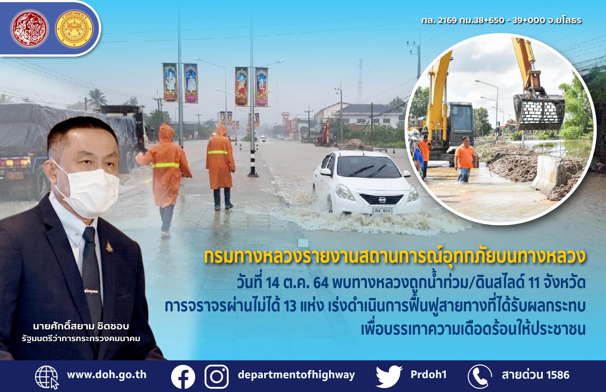 กรมทางหลวงรายงานสถานการณ์อุทกภัยบนทางหลวงวันที่ 14 ต.ค. 64