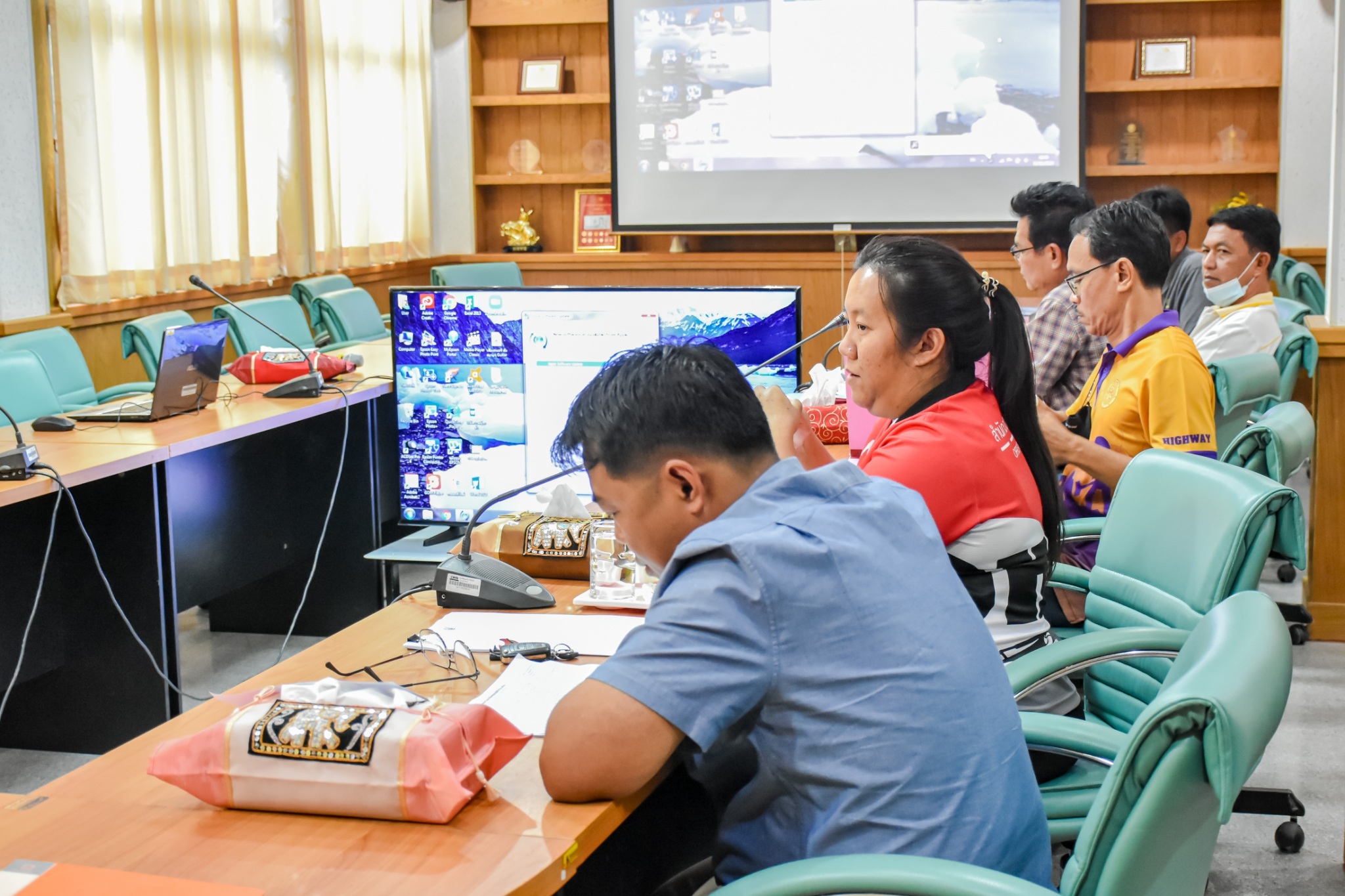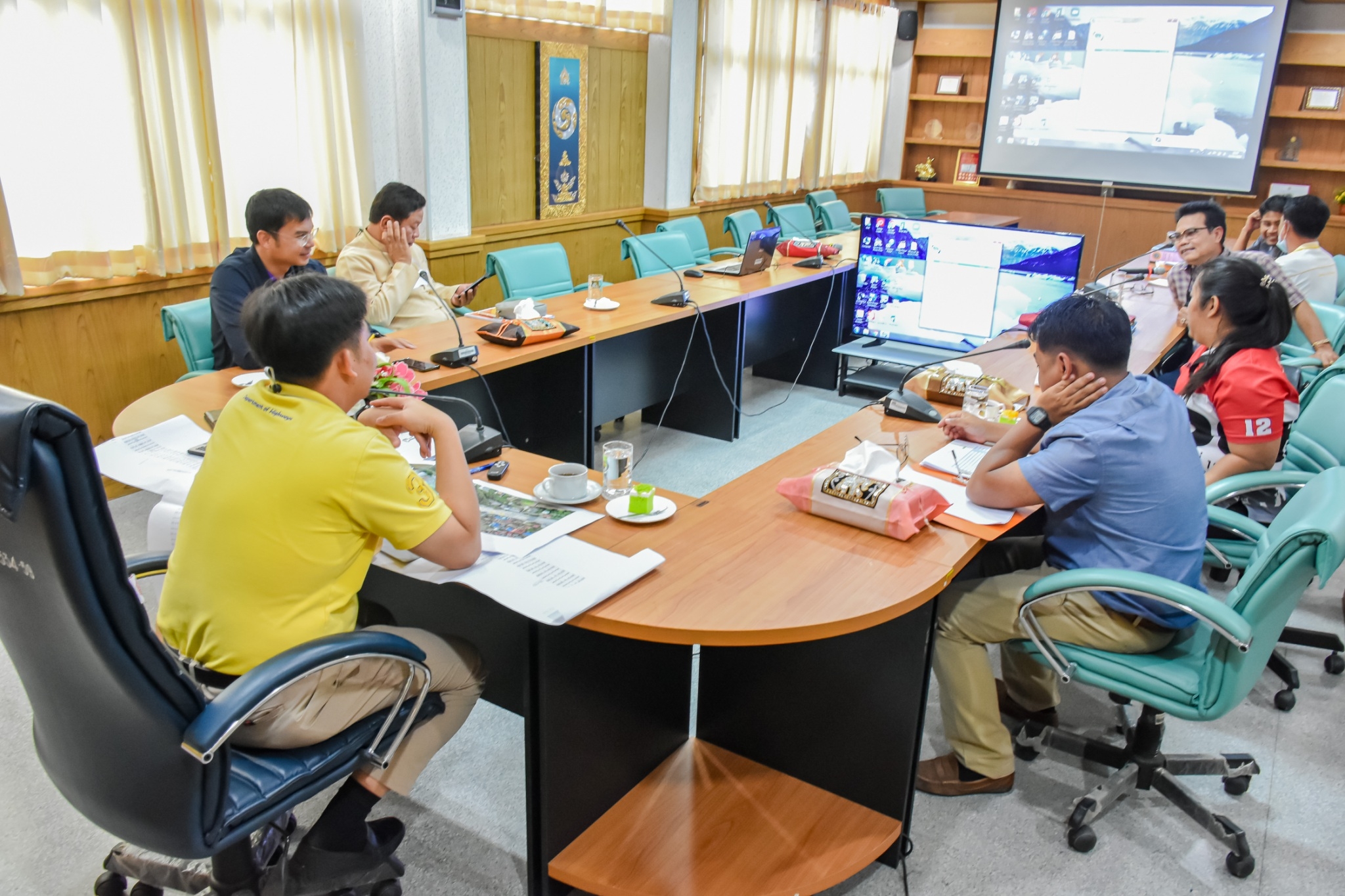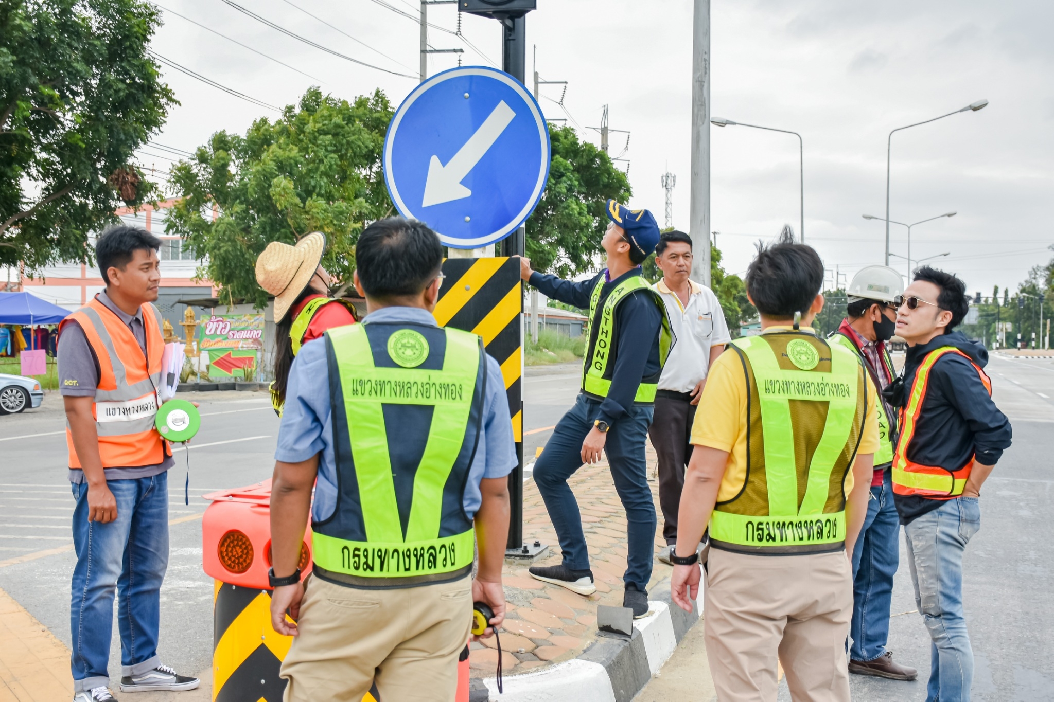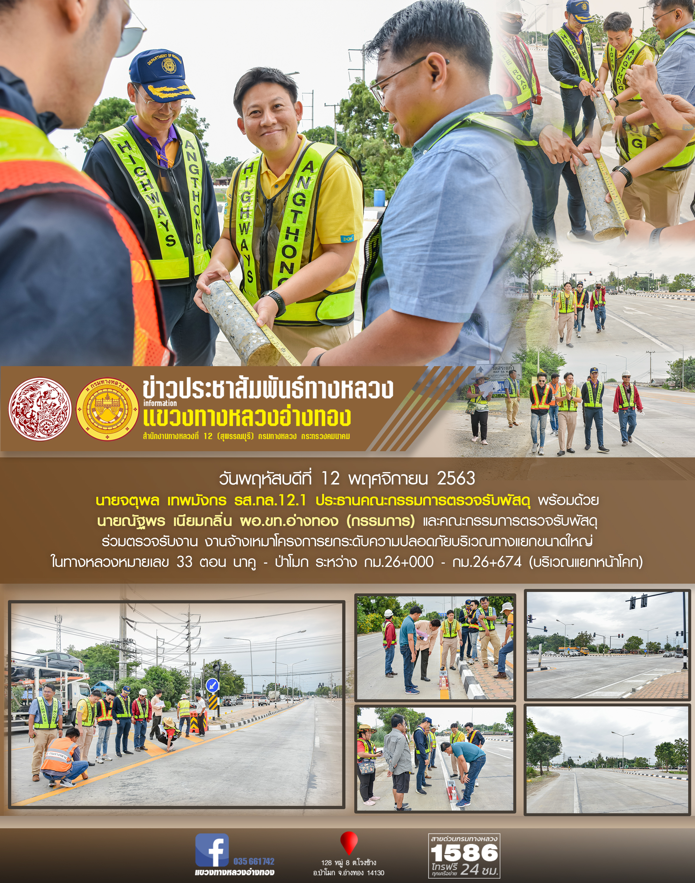นายจตุพล เทพมังกร รส.ทล.12.1 ประทานคณะกรรมการตรวจรับพัสดุ พร้อมด้วย นายณัฐพร เนียมกลิ่น ผอ.ขท.อ่างทอง (กรรมการ) และคณะกรรมการการตรวจรับพัสดุร่วมตรวจรับงาน งานจ้างเหมาโครงการยกระดับความปลอดภัยบริเวณทางแยกขนาดใหญ่ ในทางหลวงหมายเลข 33 ตอน นาคู - ป่าโมก ระหว่าง กม.26+000 - กม.26+674 (บริเวณแยกหน้าโคก)