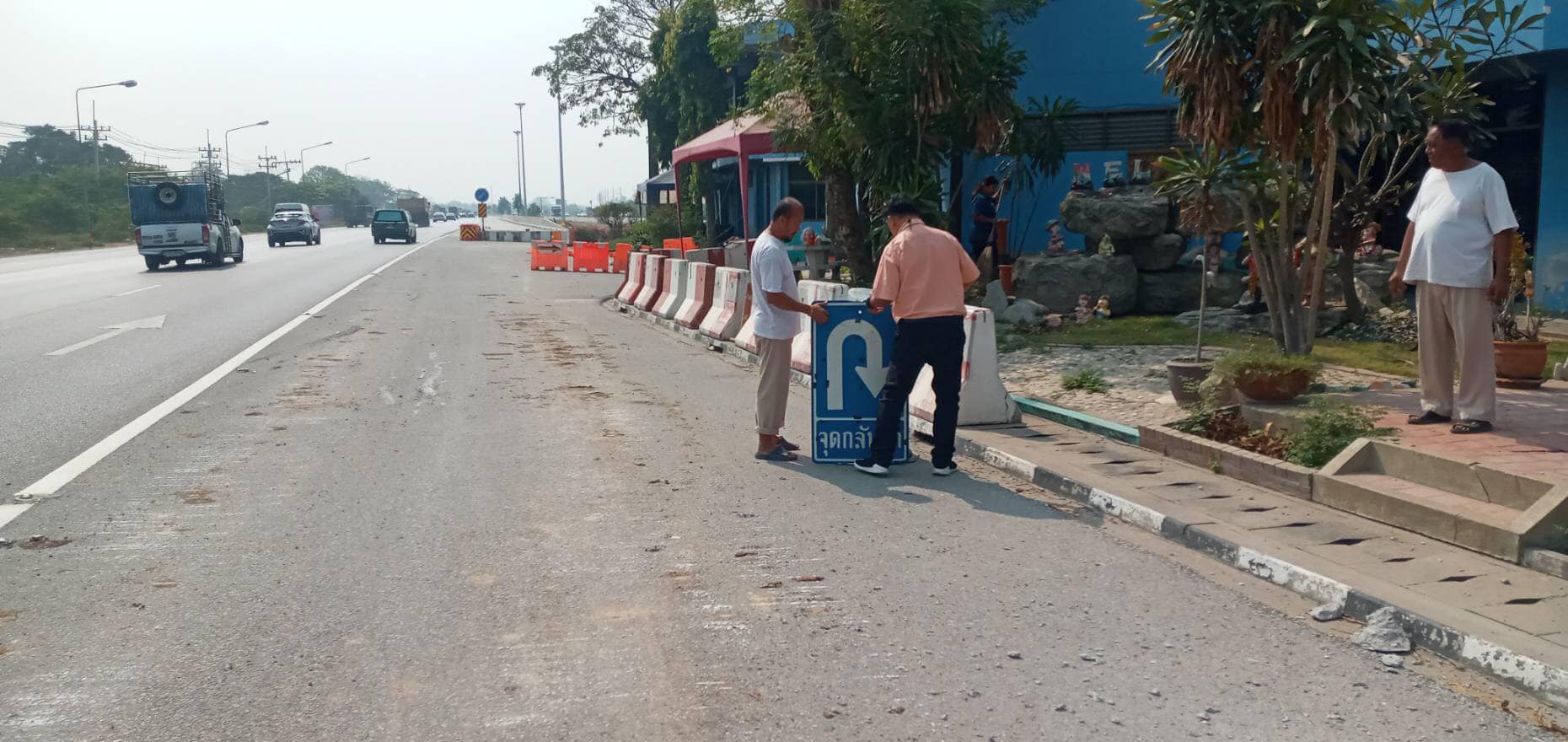 หมวดทางหลวงบางปะหัน สังกัด แขวงทางหลวงอ่างทอง ดำเนินการปิดจุดกลับรถ ทางหลวงหมายเลข 32