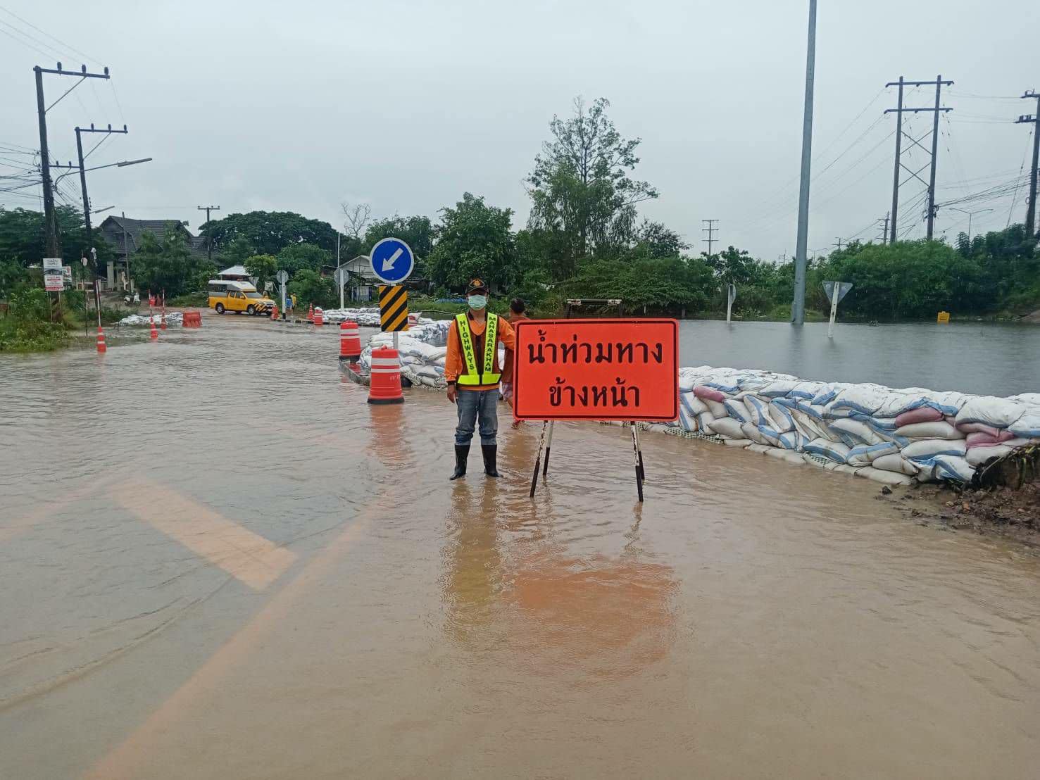 - ทล. 3263 อยุธยา – ไผ่กองดิน ช่วง กม.ที่ 11+100 (จุดกลับรถใต้สะพานสีกุก) ระดับน้ำสูง 165 ซม. ใช้ทางกลับรถข้างหน้าแทน