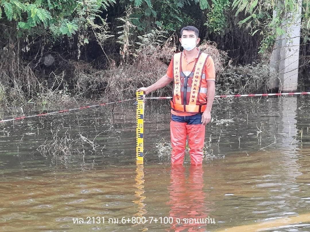 - ทล. 2 ท่าพระ – ขอนแก่น ช่วง กม.ที่ 329+913 (จุดกลับรถใต้สะพานกุดกว้าง) ระดับน้ำสูง 240 ซม.