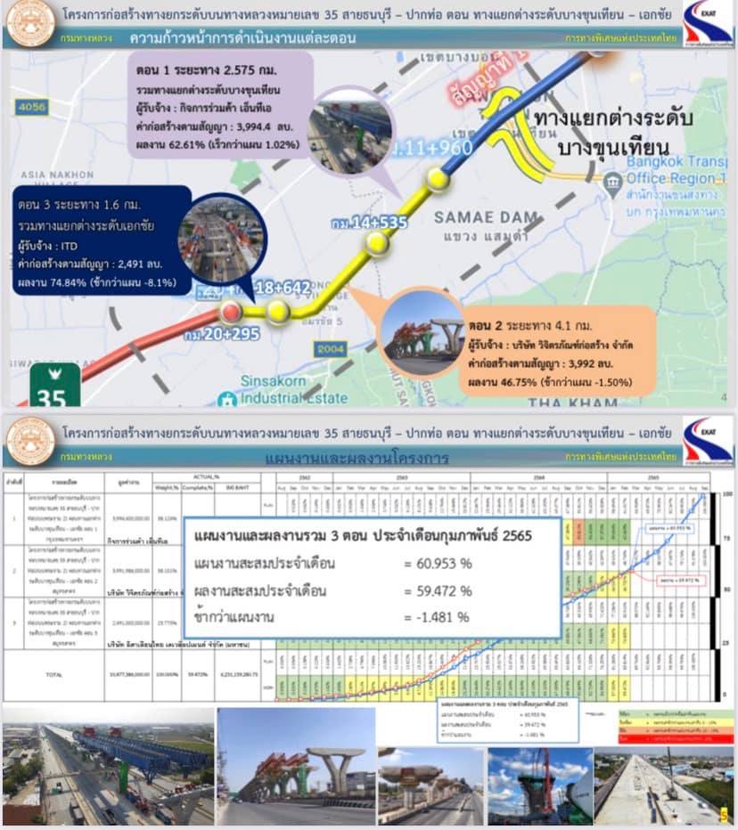 นายศักดิ์สยาม ชิดชอบ รัฐมนตรีว่าการกระทรวงคมนาคม ลงพื้นที่ติดตามความคืบหน้าโครงการก่อสร้างทางยกระดับบนทางหลวงหมายเลข 35 ตอน ทางแยกต่างระดับบางขุนเทียน - เอกชัย และโครงการก่อสร้างทางหลวงพิเศษหมายเลข 82 ช่วง เอกชัย - บ้านแพ้วโดยมี นายชยธรรม์ พรหมศร ปลัดกระทรวงคมนาคม นายพิศักดิ์ จิตวิริยะวศิน รองปลัดกระทรวงคมนาคม ผู้บริหารระดับสูง กระทรวงคมนาคมพร้อมด้วยนายสราวุธ ทรงศิวิไล อธิบดีกรมทางหลวง และผู้บริหารกรมทางหลวง ร่วมลงพื้นที่ให้การต้อนรับและบรรยายสรุป