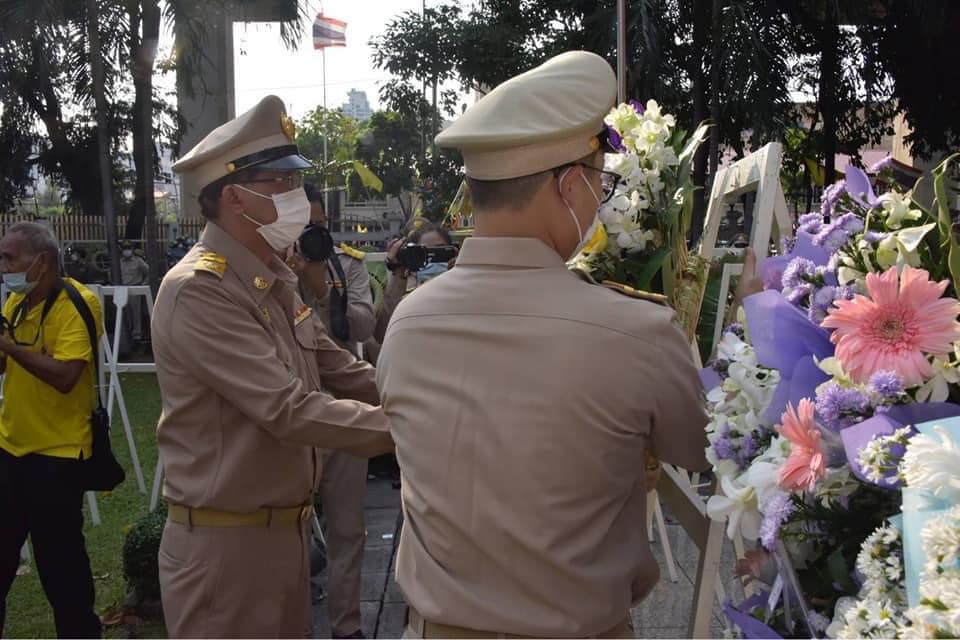 จากนั้น เวลา 08.15 น. นายวีรศักดิ์ หวังศุภกิจโกศล รัฐมนตรีช่วยว่าการกระทรวงคมนาคม เดินทางมาเป็นประธานในพิธีวางพวงมาลา ณ บริเวณอนุสาวรีย์ผู้กล้าหาญ กรมทางหลวง โดยมีผู้แทนจากหน่วยงานในสังกัดกระทรวงคมนาคมให้เกียรติมาร่วมพิธีฯ และวางพวงมาลาด้วย