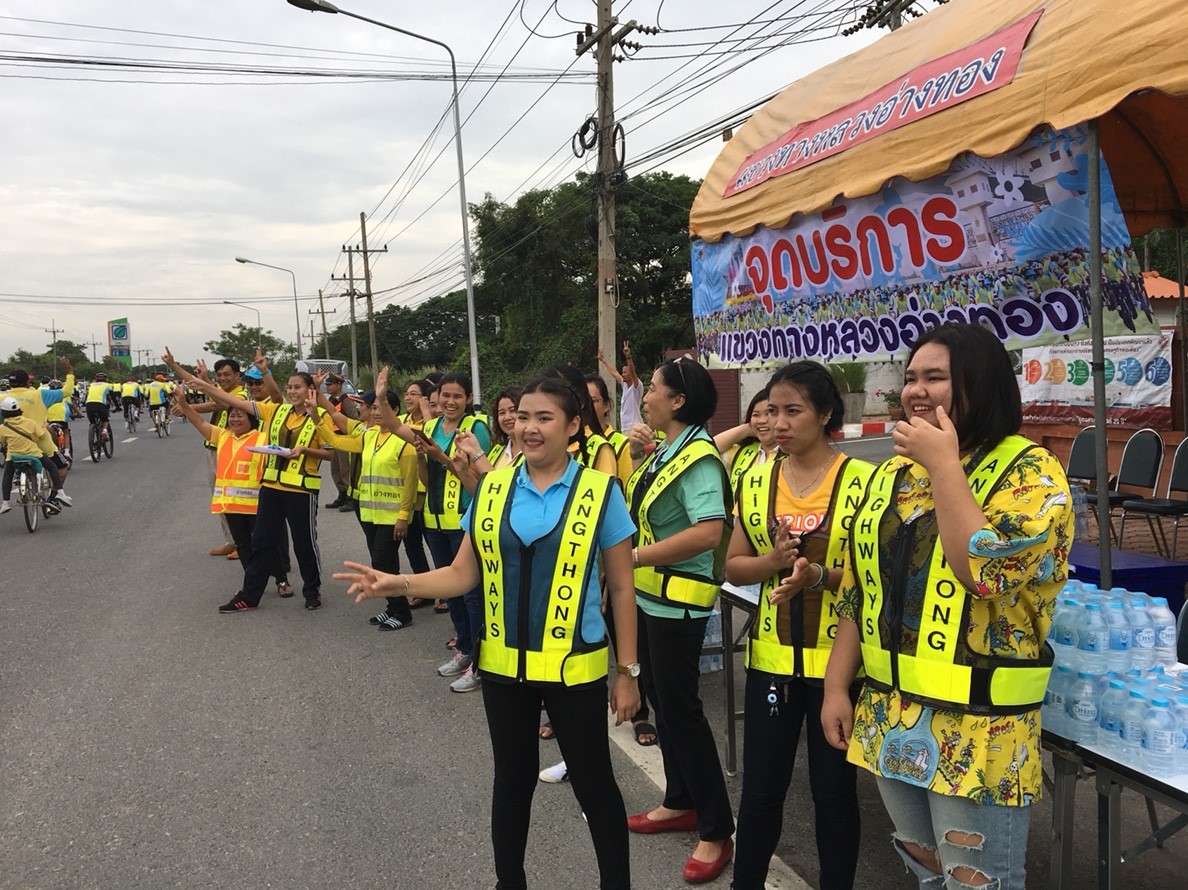 นายปฏิเวชวุฒิศักย์ สุขขี ผู้อำนวยการแขวงทางหลวงอ่างทอง พร้อมด้วยเจ้าหน้าที่แขวงทางหลวงอ่างทอง ร่วมอำนวยความสะดวกการจัดกิจกรรม “Bike อุ่นไอรัก” เพื่อถวายเป็นพระราชกุศลแด่พระบาทสมเด็จพระปรมินทรมหาภูมิพลอดุลเดช บรมนาถบพิตร เฉลิมพระเกียรติสมเด็จพระนางเจ้าสิริกิติ์ พระบรมราชินีนาถ ในรัชกาลที่ 9 และสมเด็จพระเจ้าอยู่หัวมหาวชิราลงกรณ บดินทรเทพยวรางกูร ณ ลานด้านหน้าแขวงทางหลวงอ่างทอง