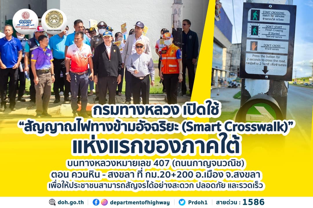 กรมทางหลวงเปิดใช้ “สัญญาณไฟทางข้ามอัจฉริยะ (Smart Crosswalk) แห่งแรกของภาคใต้” บนทางหลวงหมายเลข 407 (ถนนกาญจนวณิช) ตอน ควนหิน - สงขลา ที่ กม.20+200 อ.เมือง จ.สงขลา เพื่อให้ประชาชนสามารถสัญจรได้อย่างสะดวก ปลอดภัย และรวดเร็ว #111ปีกระทรวงคมนาคมสร้างสุขทุกการเดินทาง
