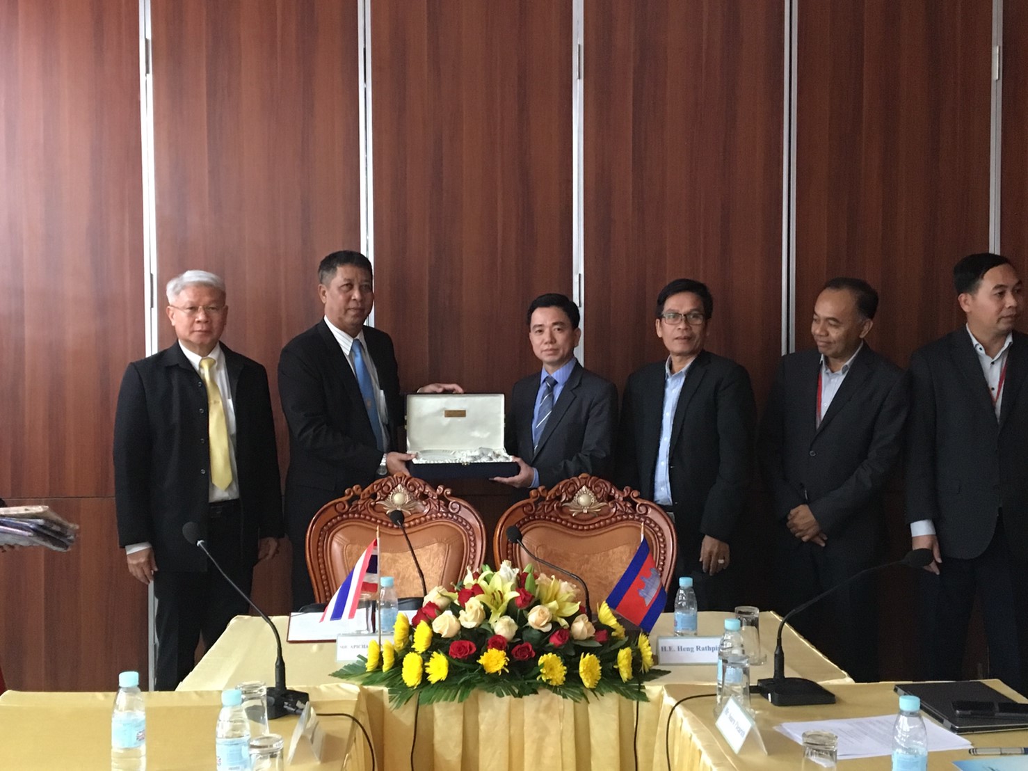 การประชุมคณะกรรมการจัดทำร่างความตกลงว่าด้วยกรรมสิทธิ์ การใช้ การบริหาร และการบำรุงรักษา สะพานมิตรภาพไทย-กัมพูชา (บ้านหนองเอี่ยน-สตึงบท) ร่วมไทย - กัมพูชา ครั้งที่ 2 ณ กระทรวงโยธาธิการและขนส่ง กรุงพนมเปญ ราชอาณาจักรกัมพูชา ฝ่ายไทยนำโดยนายอภิชาติ จันทรทรัพย์ รองอธิบดีฝ่ายวิชาการ นายปริญญา แสงสุวรรณ วิศวกรใหญ่ด้านควบคุมการก่อสร้าง นายดนัย เรืองสอน ผู้อำนวยการสำนักบริหารโครงการทางหลวงระหว่างประเทศ นายอิทธิวัตร์ กฤษณะวณิช ผู้อำนวยการสำนักก่อสร้างสะพาน นายจิระพงศ์ เทพพิทักษ์ ผู้อำนวยการสำนักงานทางหลวงที่ 10 นายปิยะ ชูตินันท์ รองผู้อำนวยการสำนักบริหารโครงการทางหลวงระหว่างประเทศ พร้อมคณะ ประชุมร่วมกับฝ่ายกัมพูชา นำโดย H.E. Heng Rathpiseth อธิบดีกรมโยธาธิการ กระทรวงโยธาธิการและขนส่ง และคณะ