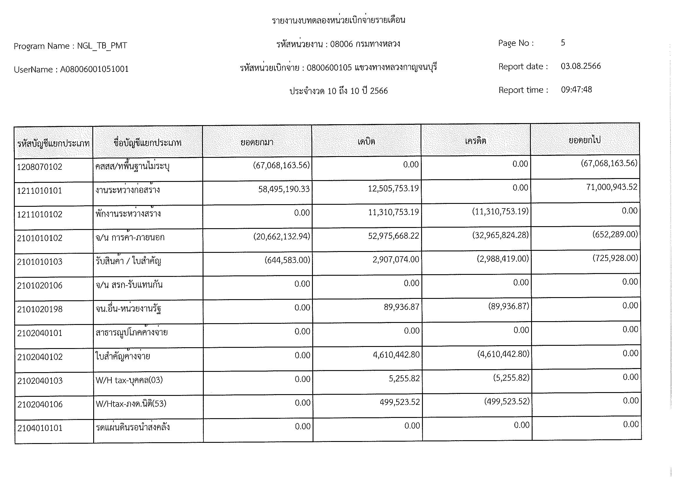 รายงานงบทดลองหน่วยเบิกจ่ายรายเดือน ประจำงวด 10 ประจำปีที่ 2566