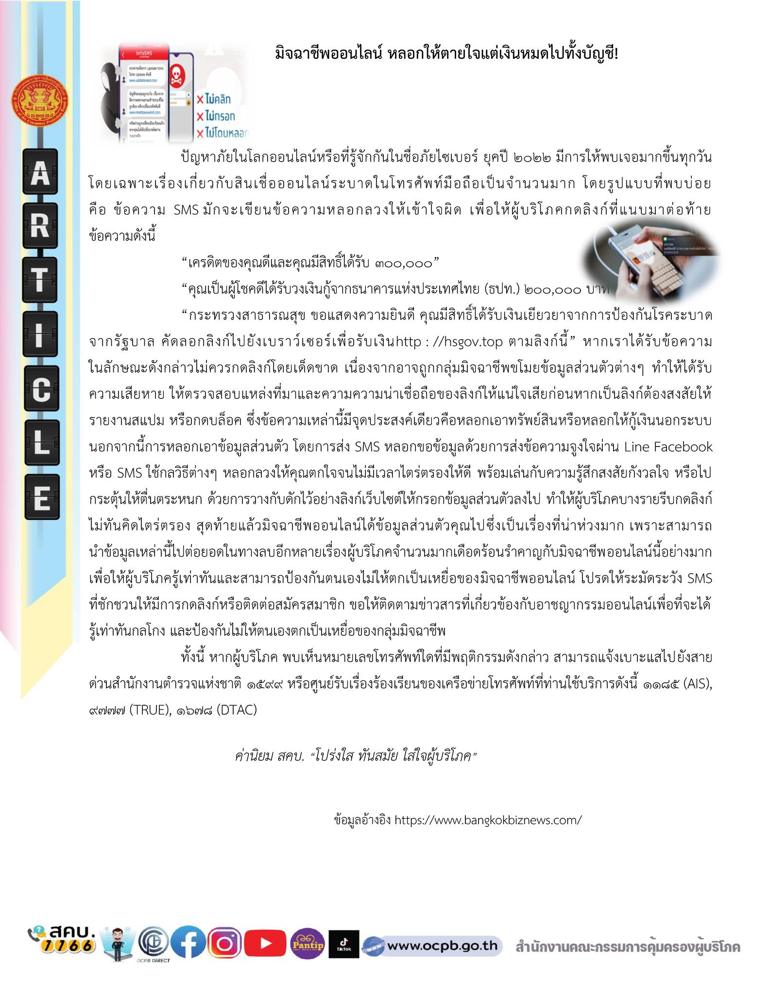 สำนักงานคณะกรรมการคุ้มครองผู้บริโภค ประชาสัมพันธ์ ข่าว สคบ. ด้านการคุ้มครองผู้บริโภค