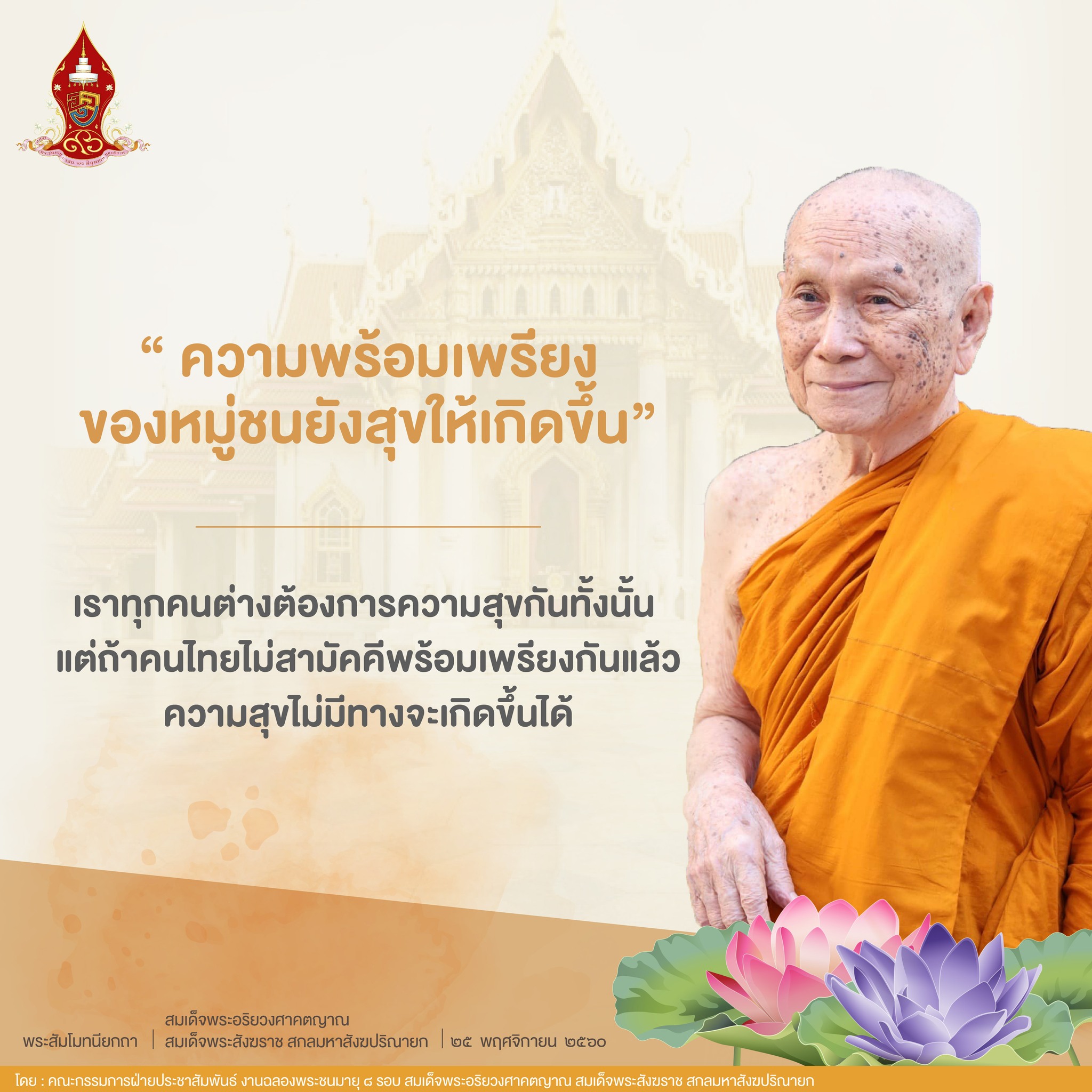 พระสัมโมทนียกถา เนื่องในโอกาสฉลองพระชนมายุ ๘ รอบ สมเด็จพระอริยวงศาคตญาณ สมเด็จพระสังฆราช สกลมหาสังฆปริณายก ๒๖ มิถุนายน ๒๕๖๖