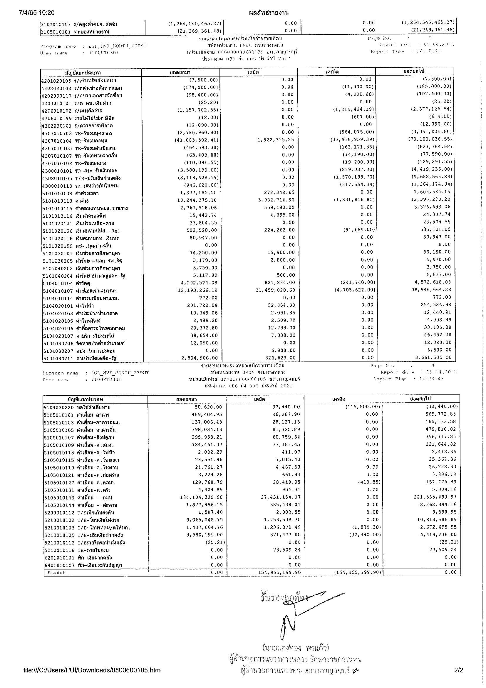 รายงานงบทดลองหน่วยเบิกจ่ายรายเดือน ประจำงวด 6 ประจำปีที่ 2565