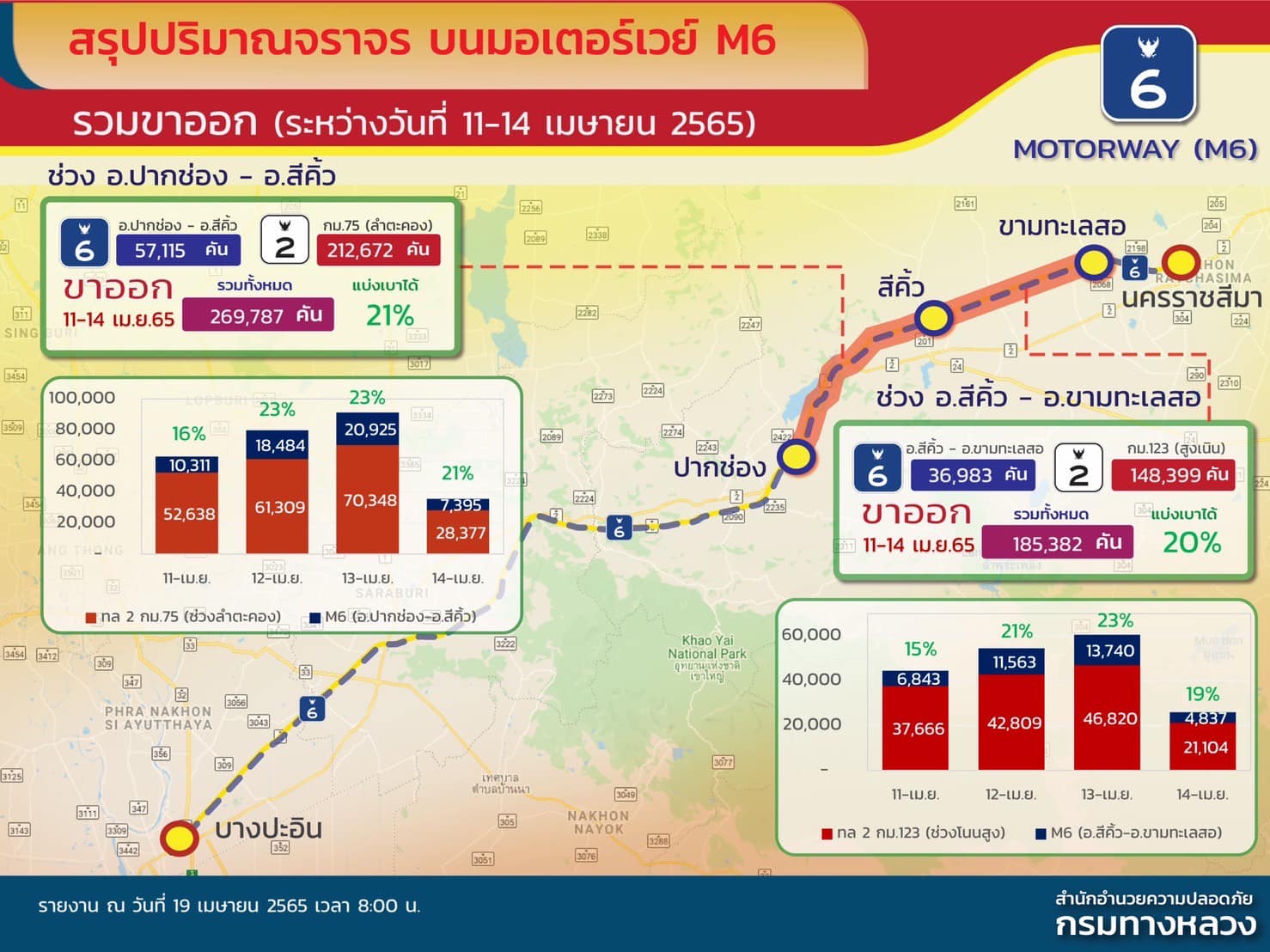 กรมทางหลวง สรุปการให้บริการประชาชนช่วงเทศกาลสงกรานต์ 2565 ยอดจำนวนรถเดินทางกว่า 6.8 ล้านคัน ไม่มีผู้เสียชีวิตบนมอเตอร์เวย์