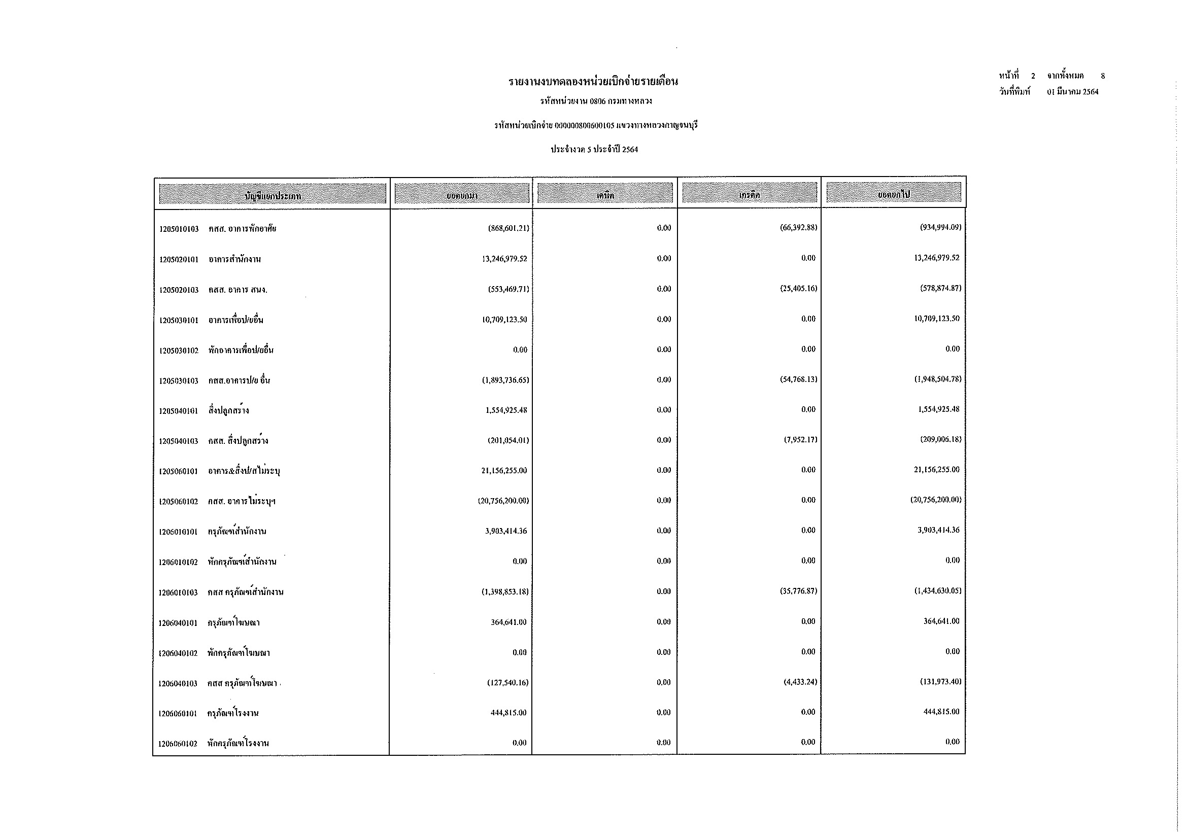 รายงานงบทดลองหน่วยเบิกจ่ายรายเดือน ประจำงวด 5 ประจำปีที่ 2564