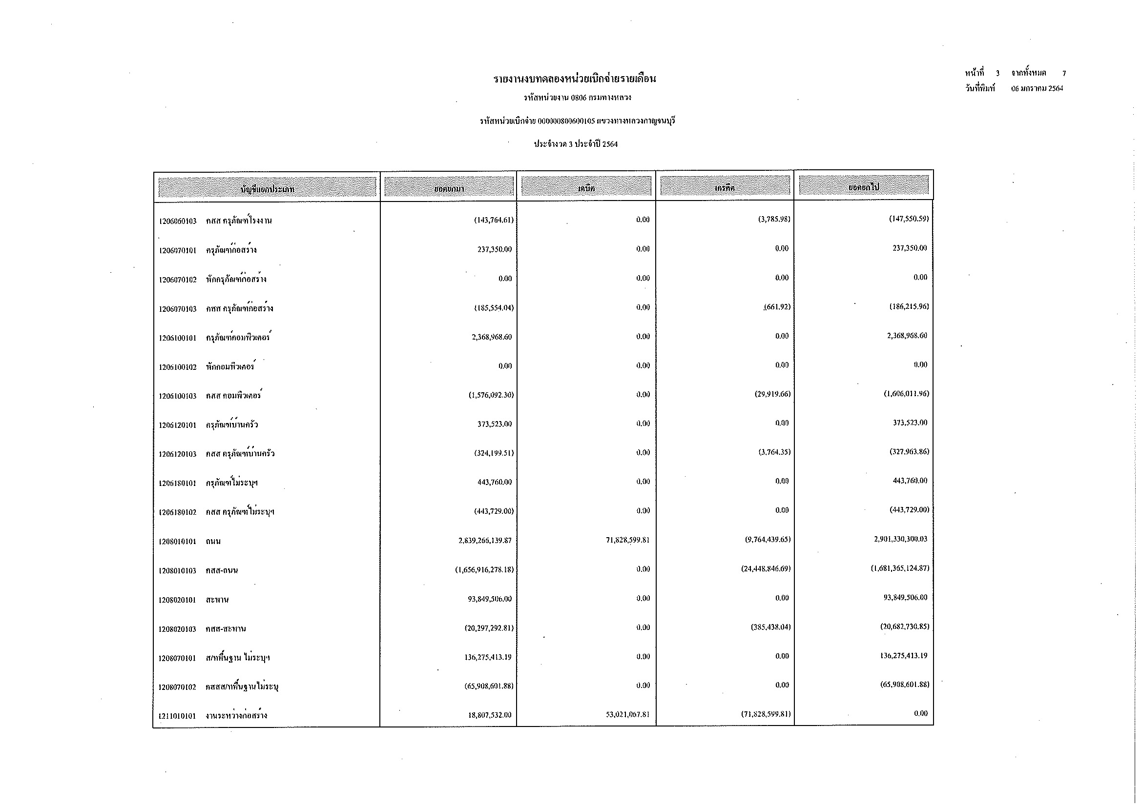 รายงานงบทดลองหน่วยเบิกจ่ายรายเดือน ประจำงวด 3 ประจำปีที่ 2564