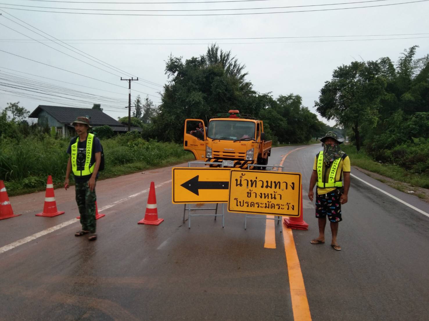 แขวงทางหลวงกาญจนบุรีโดยหมวดทางหลวงในสังกัด ได้ดำเนินการอำนวยความปลอดภัยด้านการจราจร จากภัยพิบัติน้ำท่วมผิวทาง