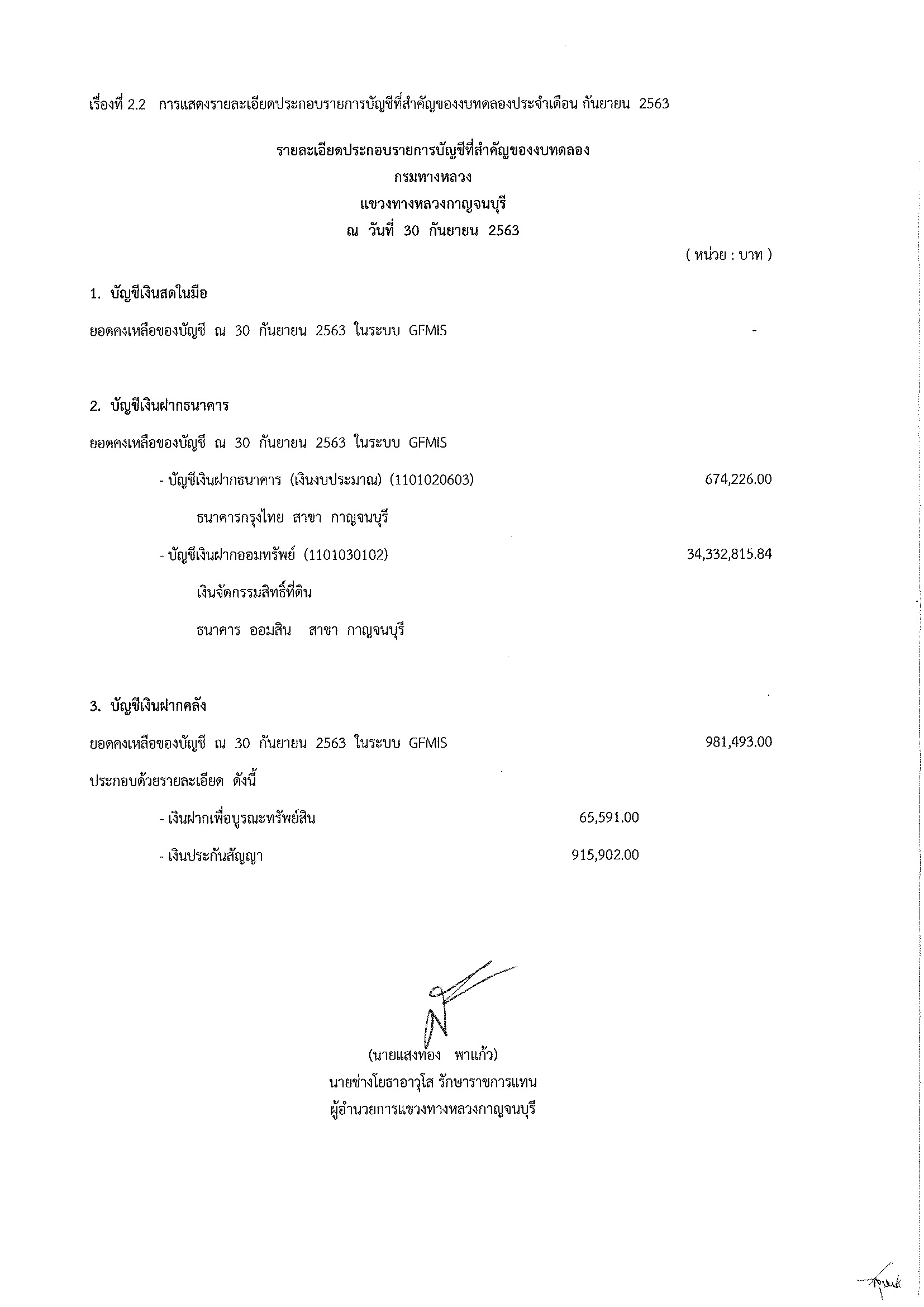 รายละเอียดประกอบรายการบัญชีที่สำคัญของงบทดลอง กรมทางหลวง แขวงทางหลวงกาญจนบุรี ณวันที่ 30 กันยายน 2563