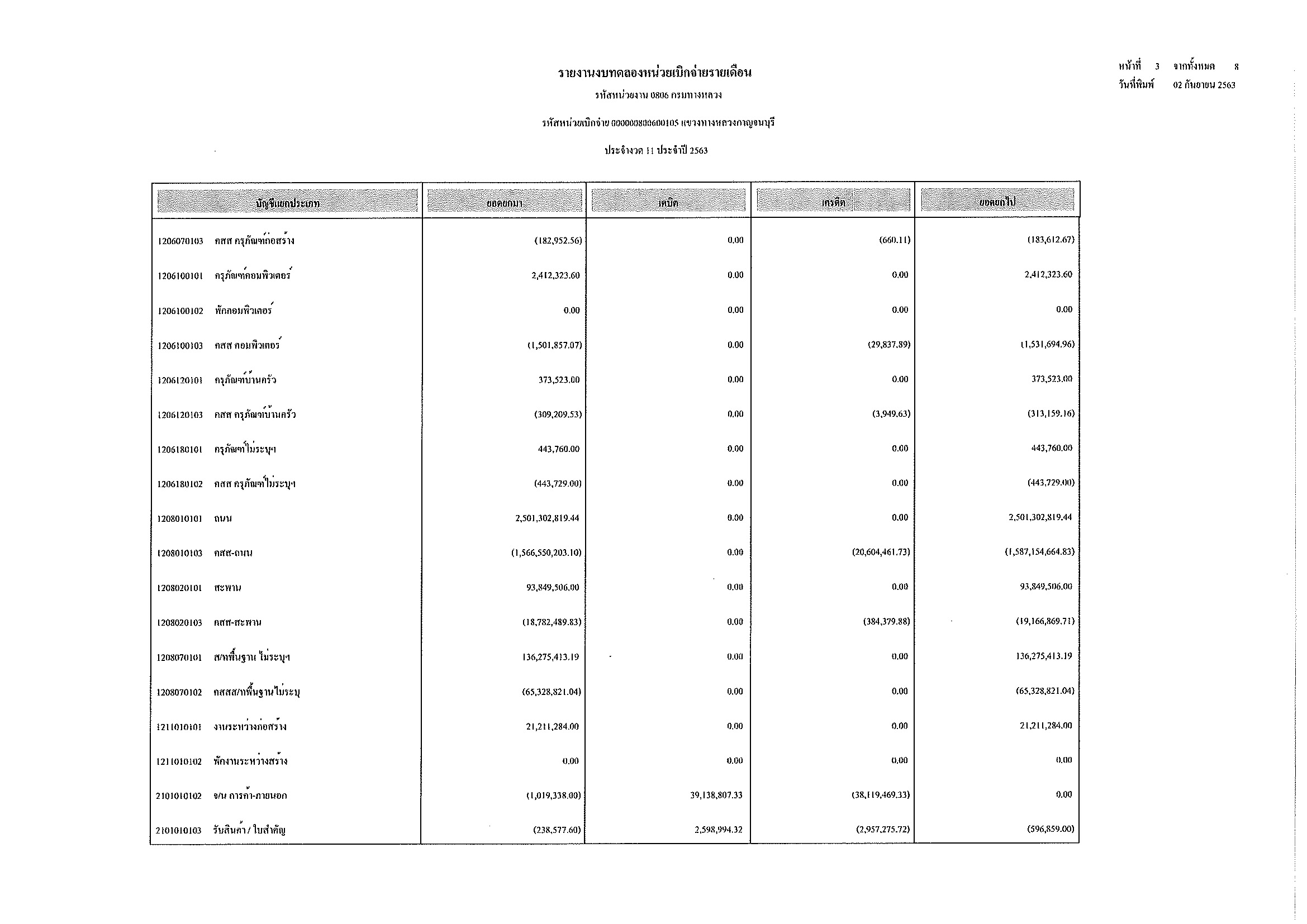 รายงานงบทดลองหน่วยเบิกจ่ายรายเดือน ประจำงวด 11 ประจำปีที่ 2563