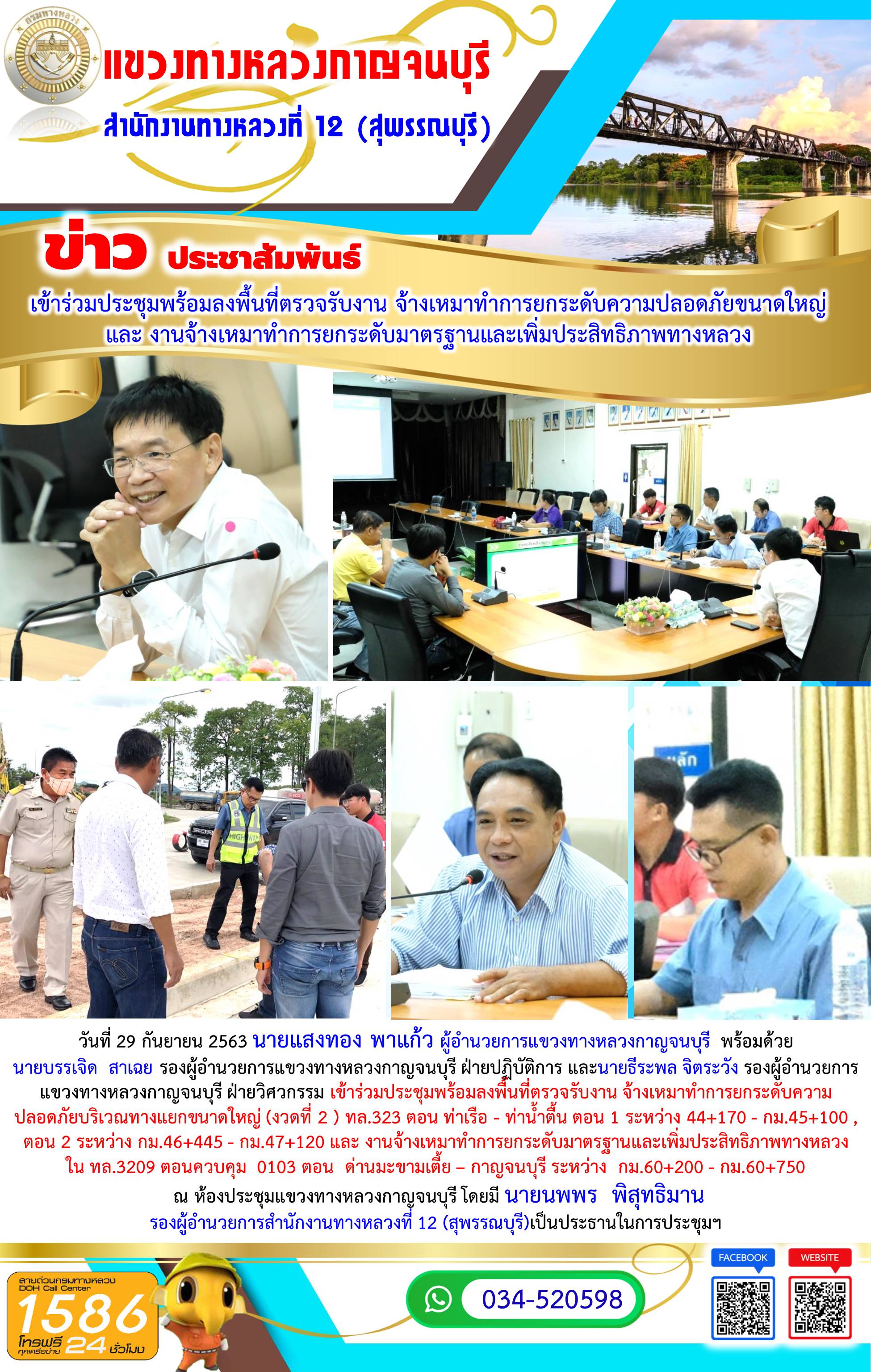 เข้าร่วมประชุมพร้อมลงพื้นที่ตรวจรับงาน จ้างเหมาทำการยกระดับความปลอดภัยขนาดใหญ่ และ งานจ้างเหมาทำการยกระดับมาตรฐานและเพิ่มประสิทธิภาพทางหลวง