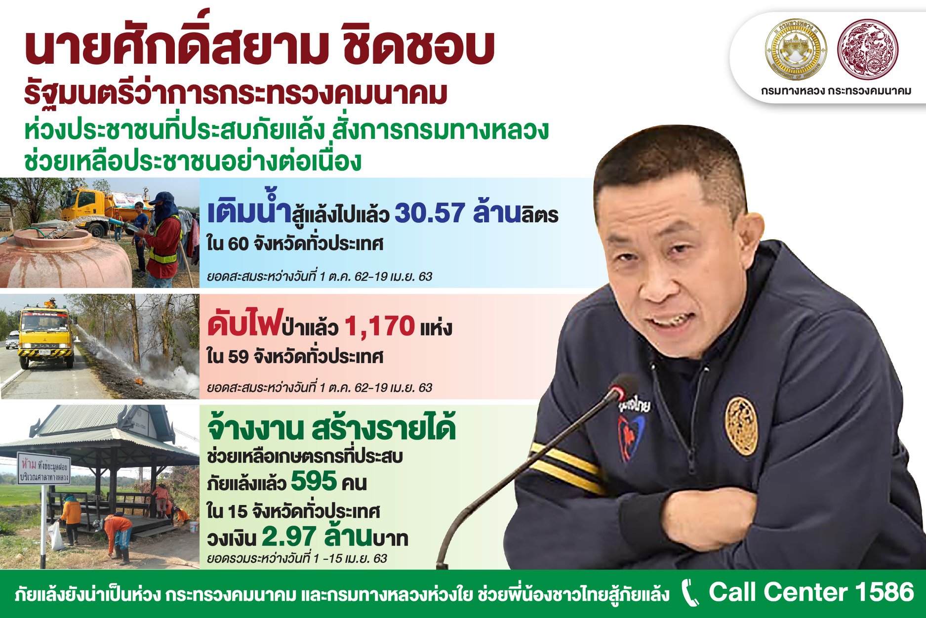 กรมทางหลวงส่งน้ำกินน้ำใช้ 30 ล้านลิตร ถึงมือประชาชน 60 จังหวัดทั่วประเทศ