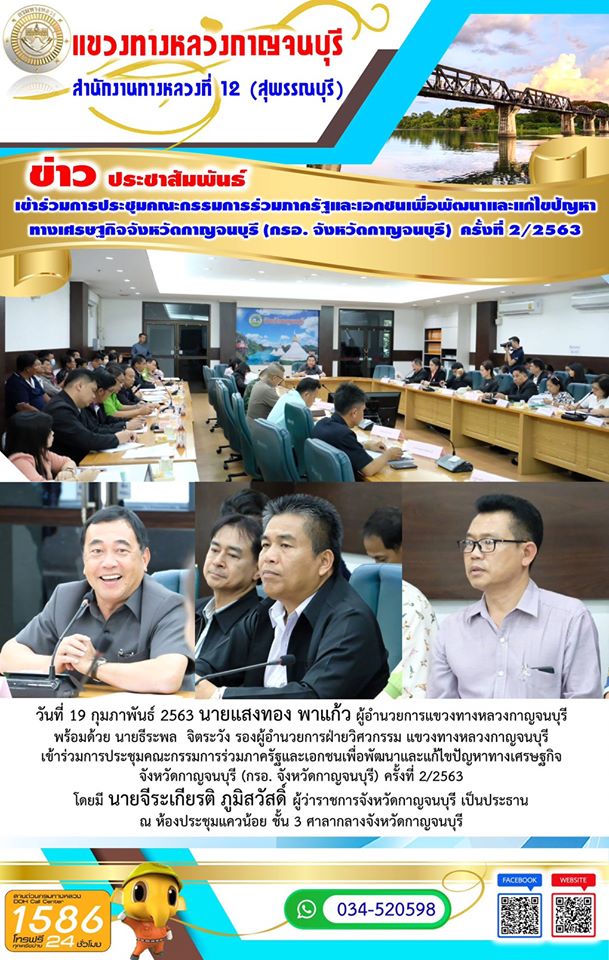 เข้าร่วมการประชุมคณะกรรมการร่วมภาครัฐและเอกชนเพื่อพัฒนาและแก้ไขปัญหาทางเศรษฐกิจ จังหวัดกาญจนบุรี (กรอ. จังหวัดกาญจนบุรี) ครั้งที่ 2/2563