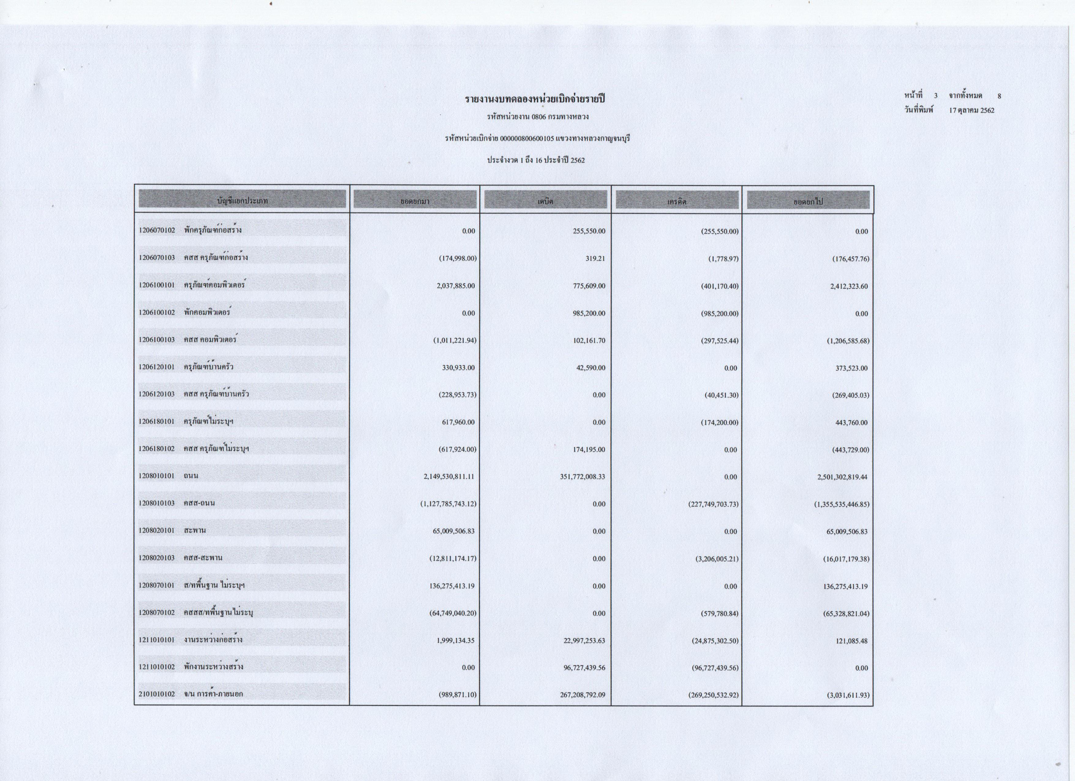 รายงานงบทดลองหน่วยเบิกจ่ายประจำปี 2562