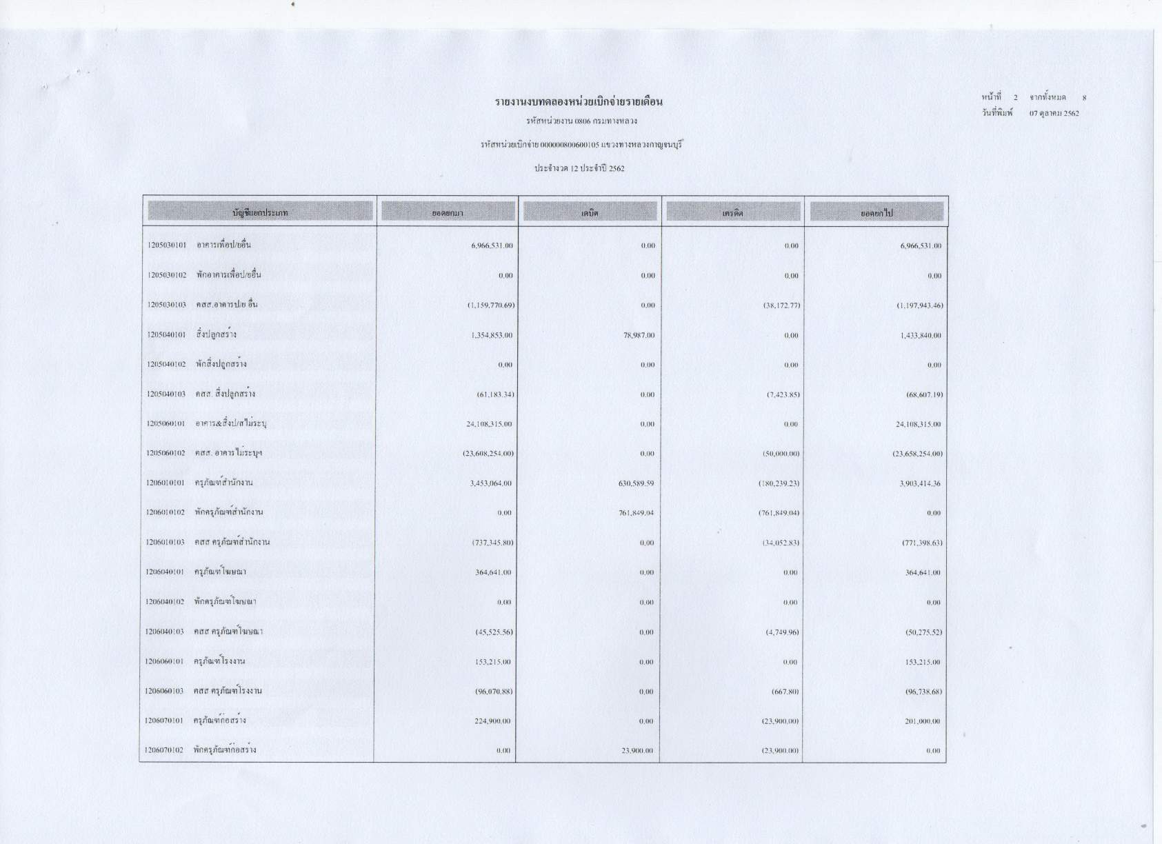 รายงานงบทดลองหน่วยเบิกจ่ายรายเดือน ประจำงวดที่ 12 ประจำปี 2562