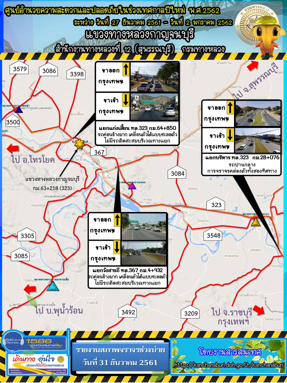 รายงานสภาพจราจรรอบบ่าย วันที่ 31 ธันวาคม 2561