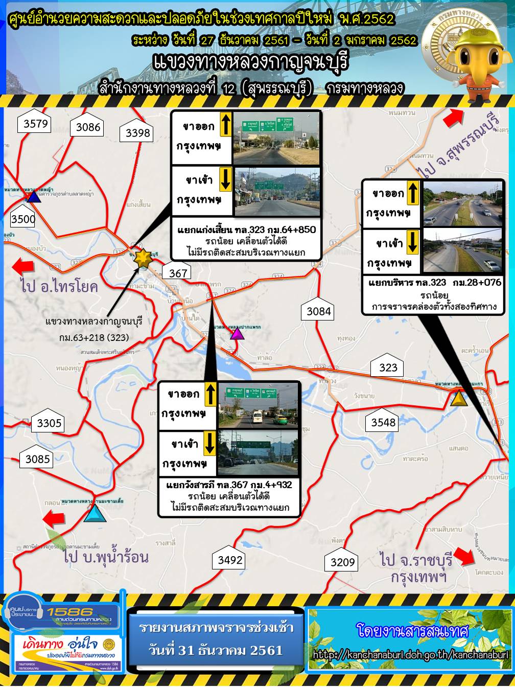 รายงานสภาพจราจรรอบเช้า วันที่ 31 ธันวาคม 2561