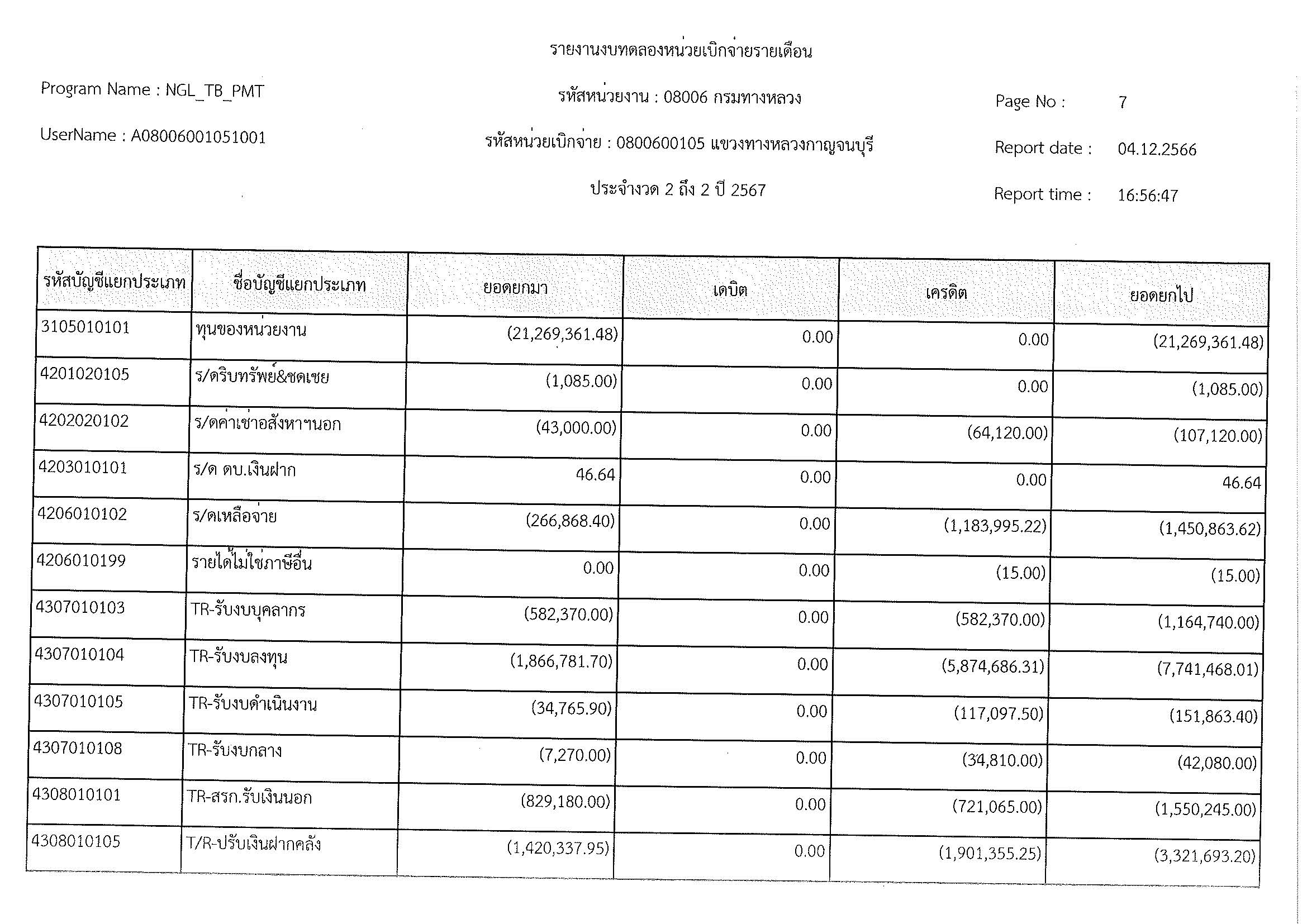 รายงานงบทดลองประจำเดือน ธันวาคม 2566