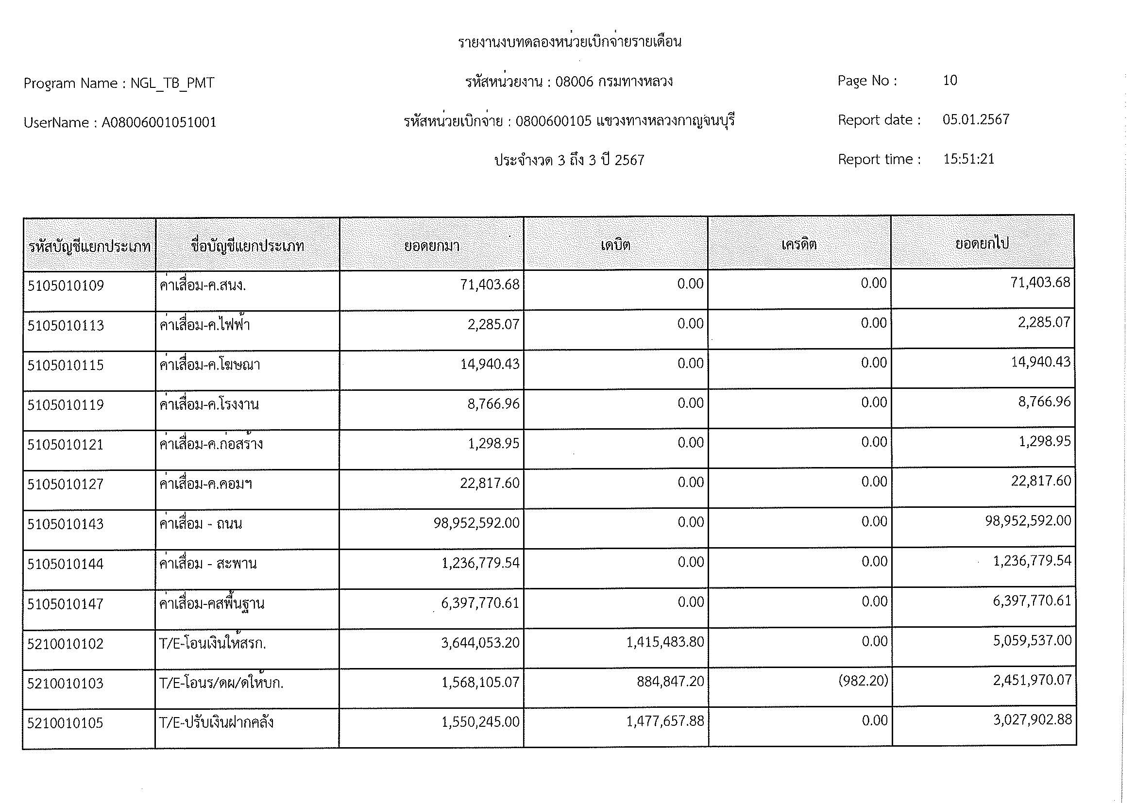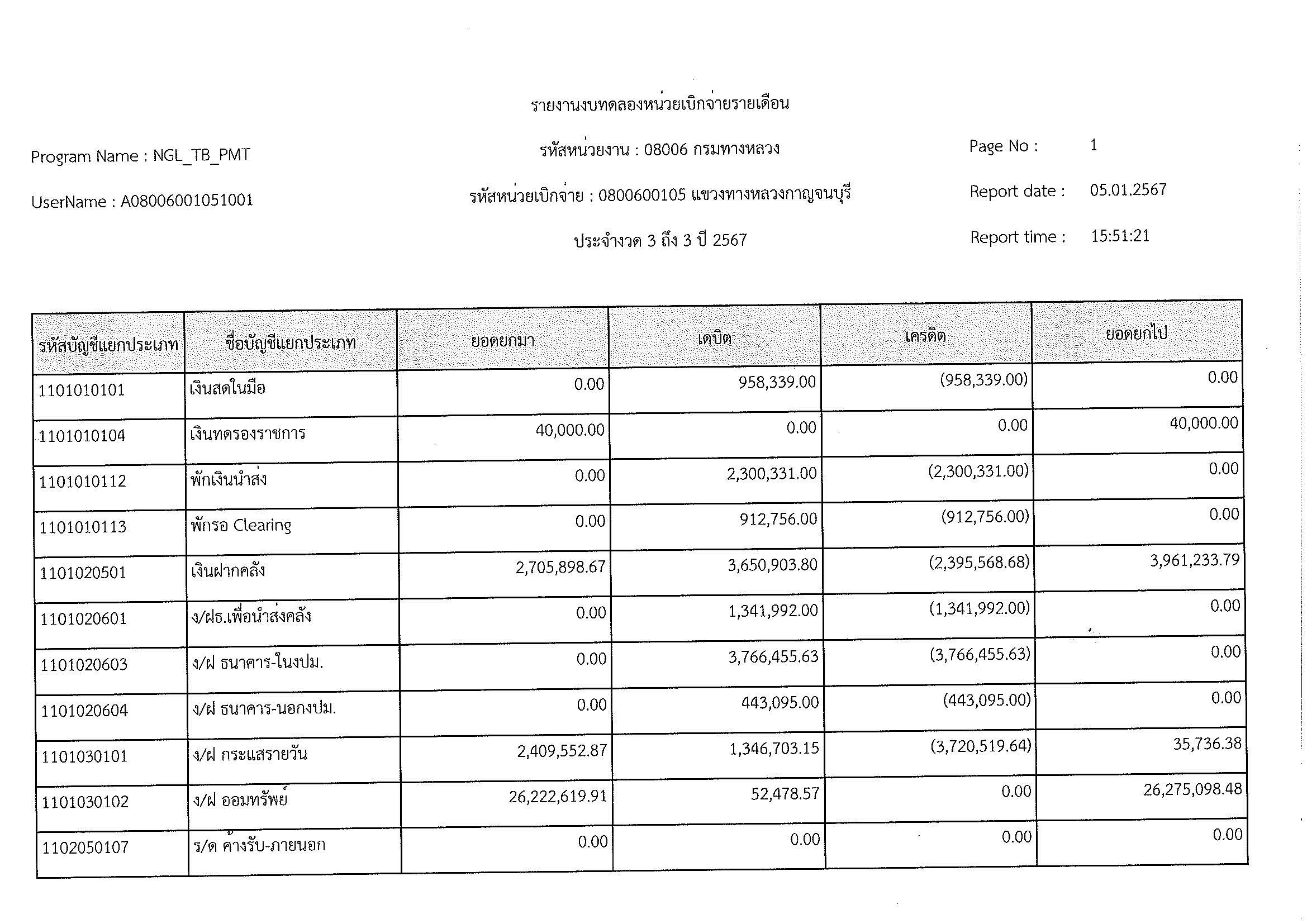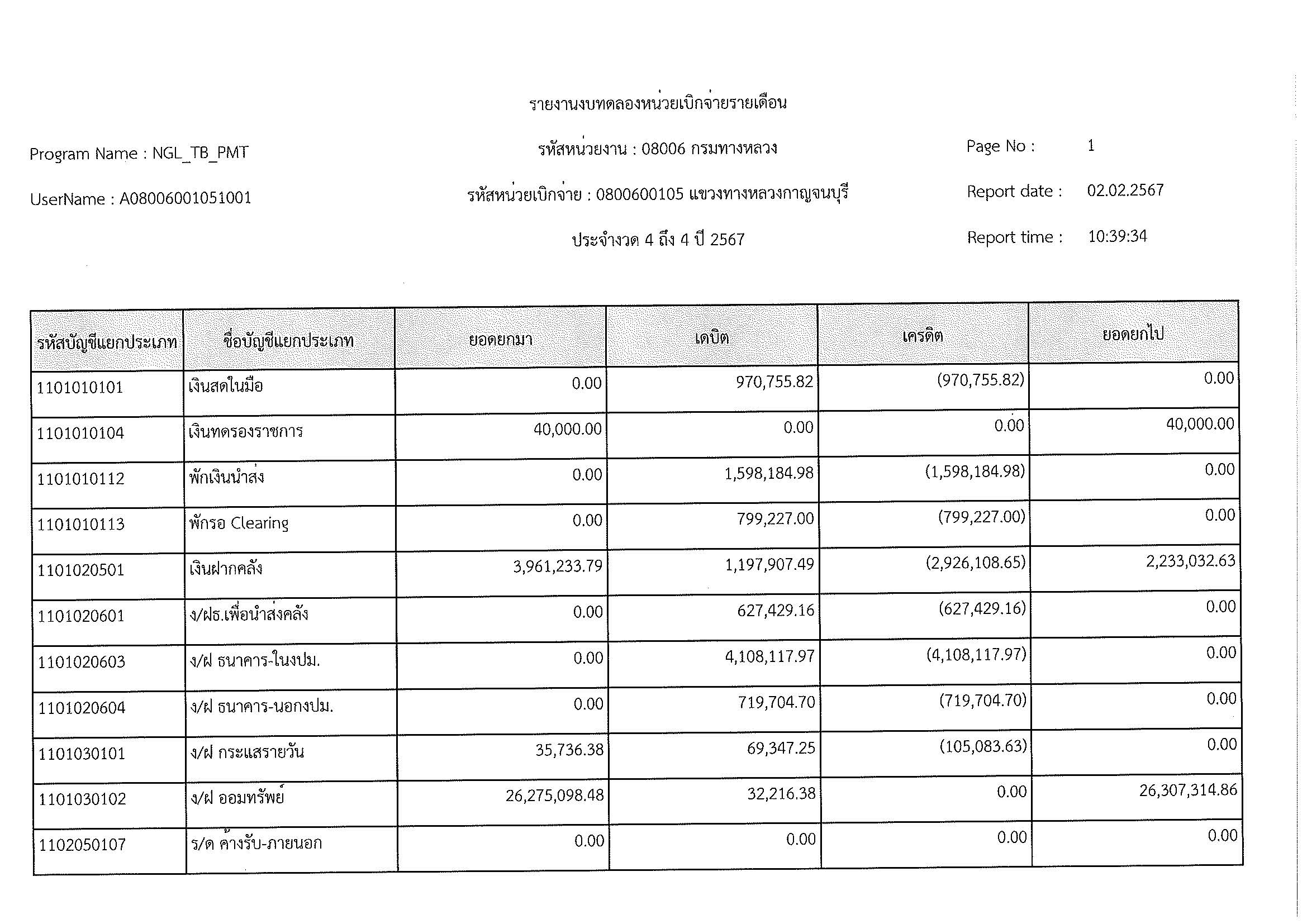 รายงานงบทดลองหน่วยเบิจจ่ายรายเดือน