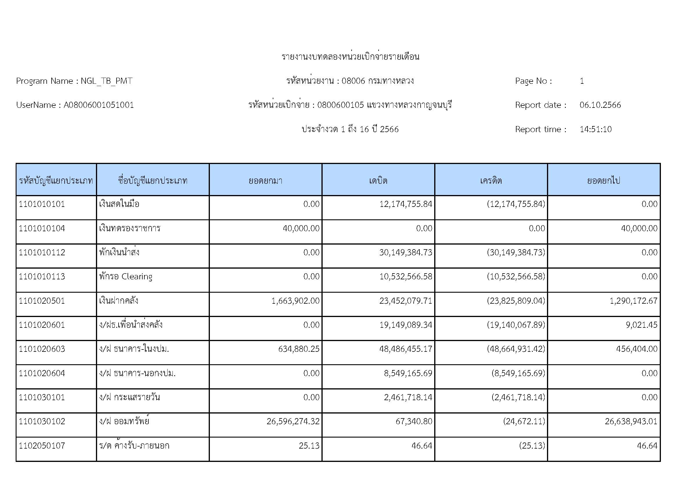 รายงานงบทดลองหน่วยเบิจจ่ายรายเดือน