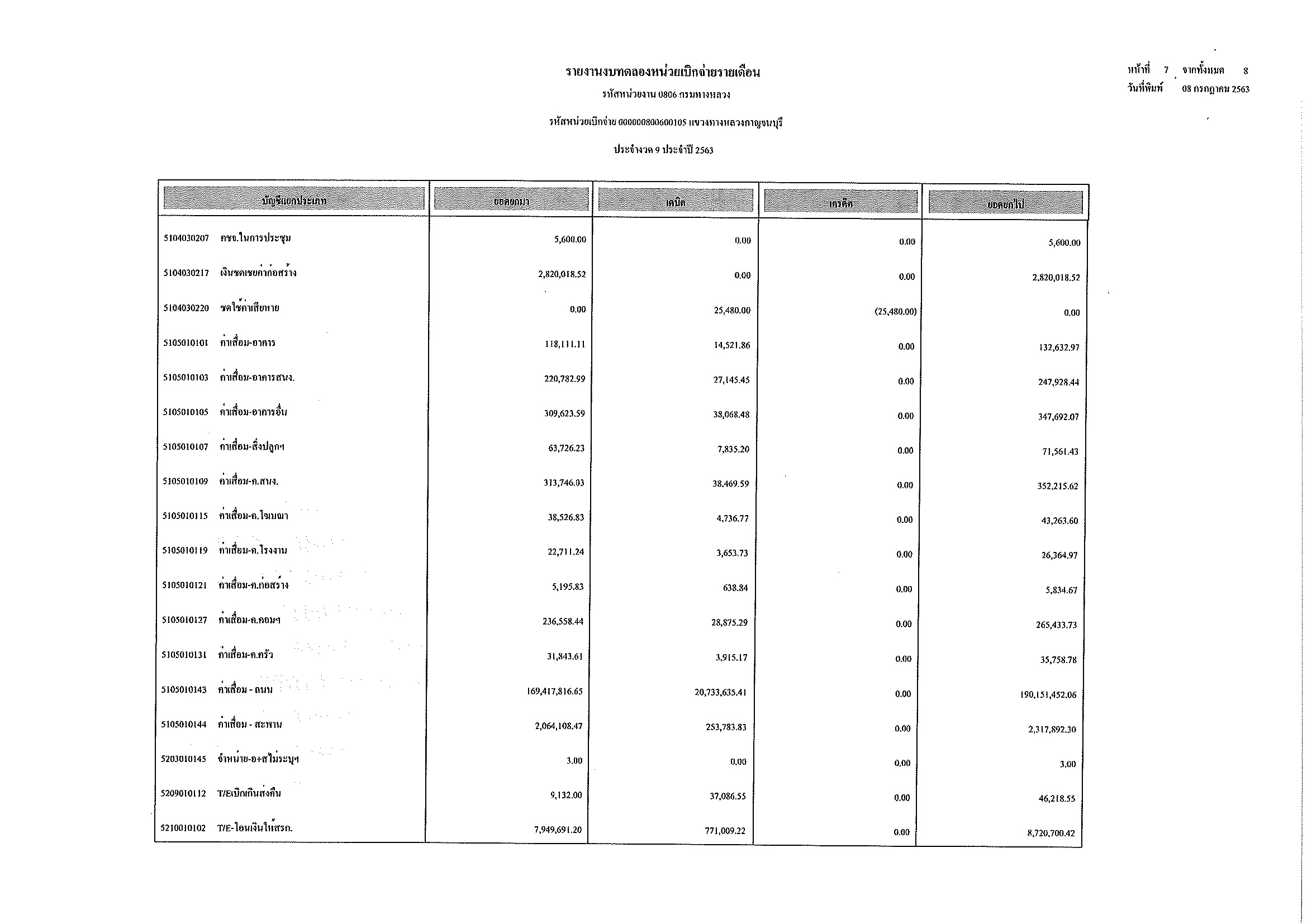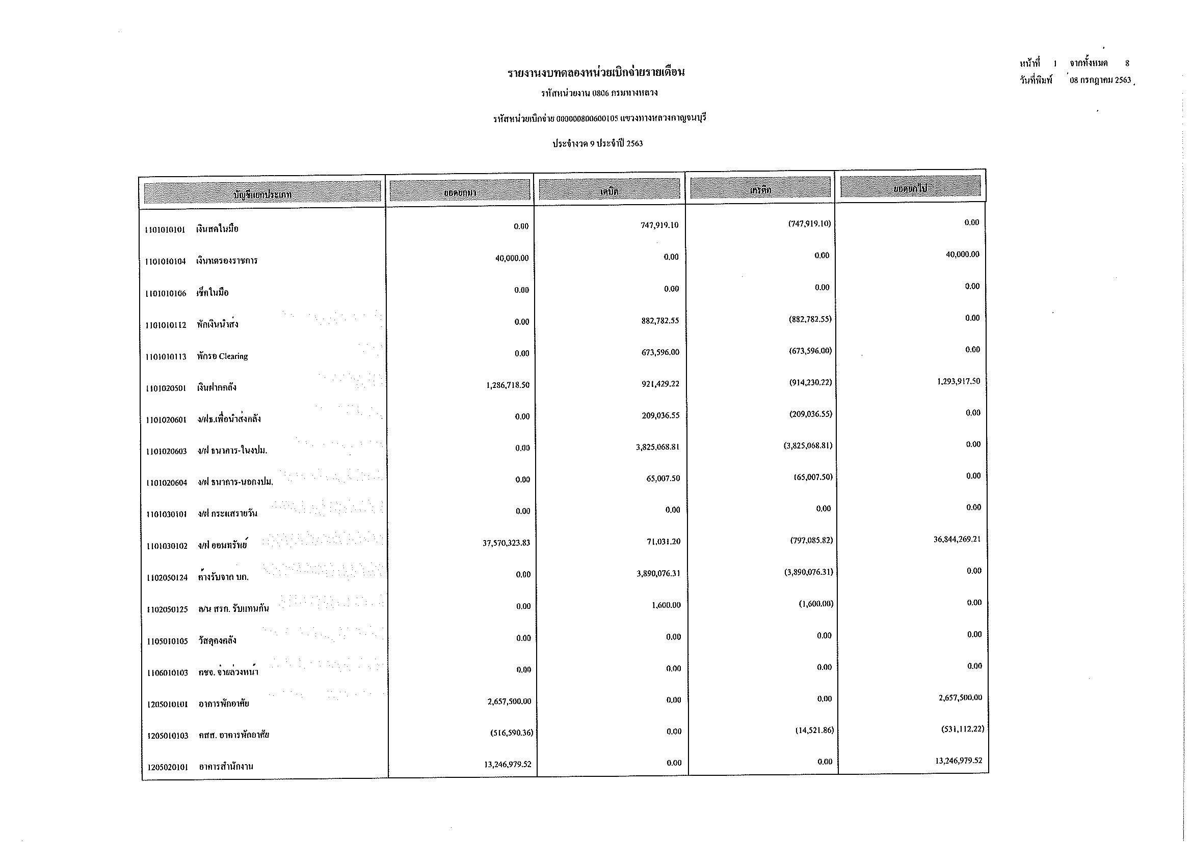 ข้อมูลข่าว : รายงานงบทดลองหน่วยเบิกจ่ายรายเดือน ประจำงวด 9 ประจำปีที่ 2563