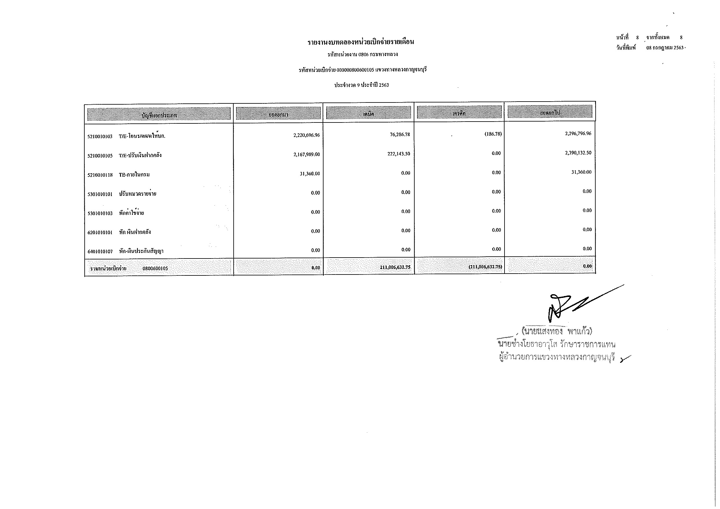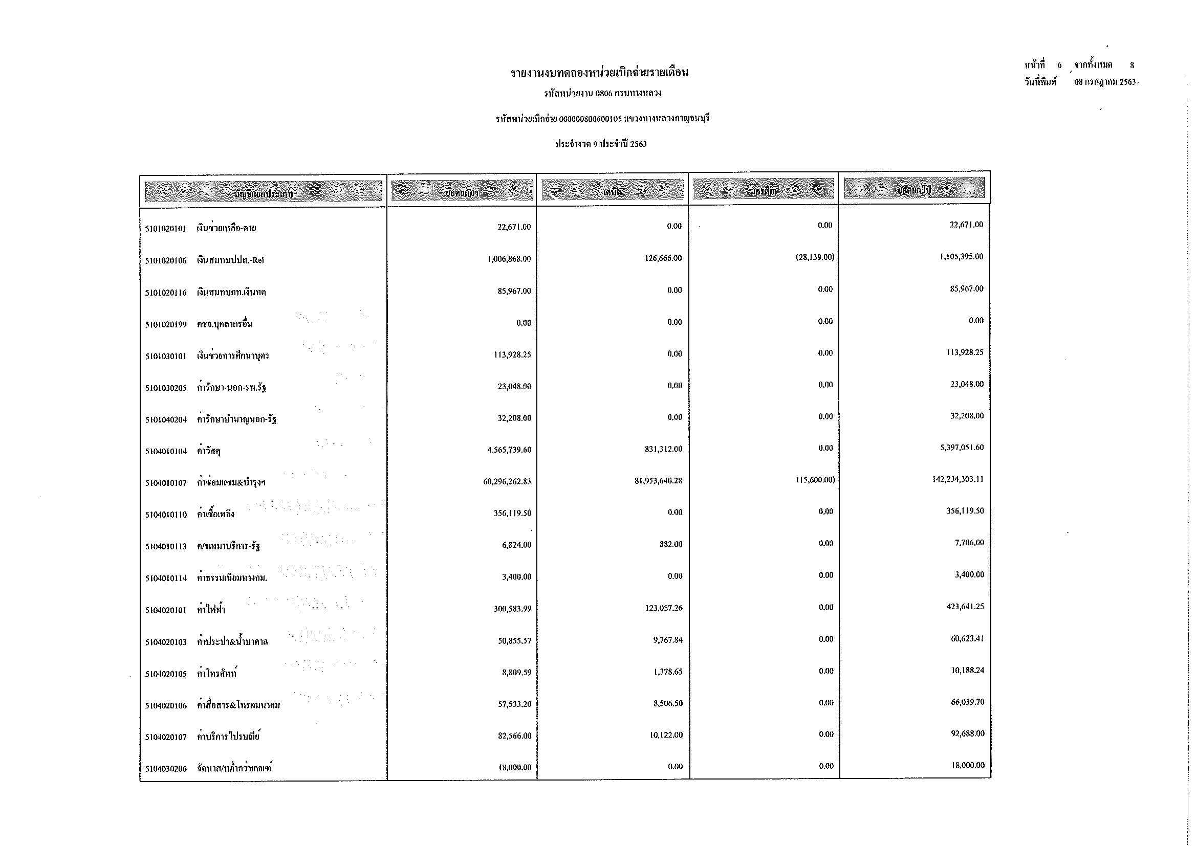 รายงานงบทดลองหน่วยเบิกจ่ายรายเดือน ประจำงวด 9 ประจำปีที่ 2563