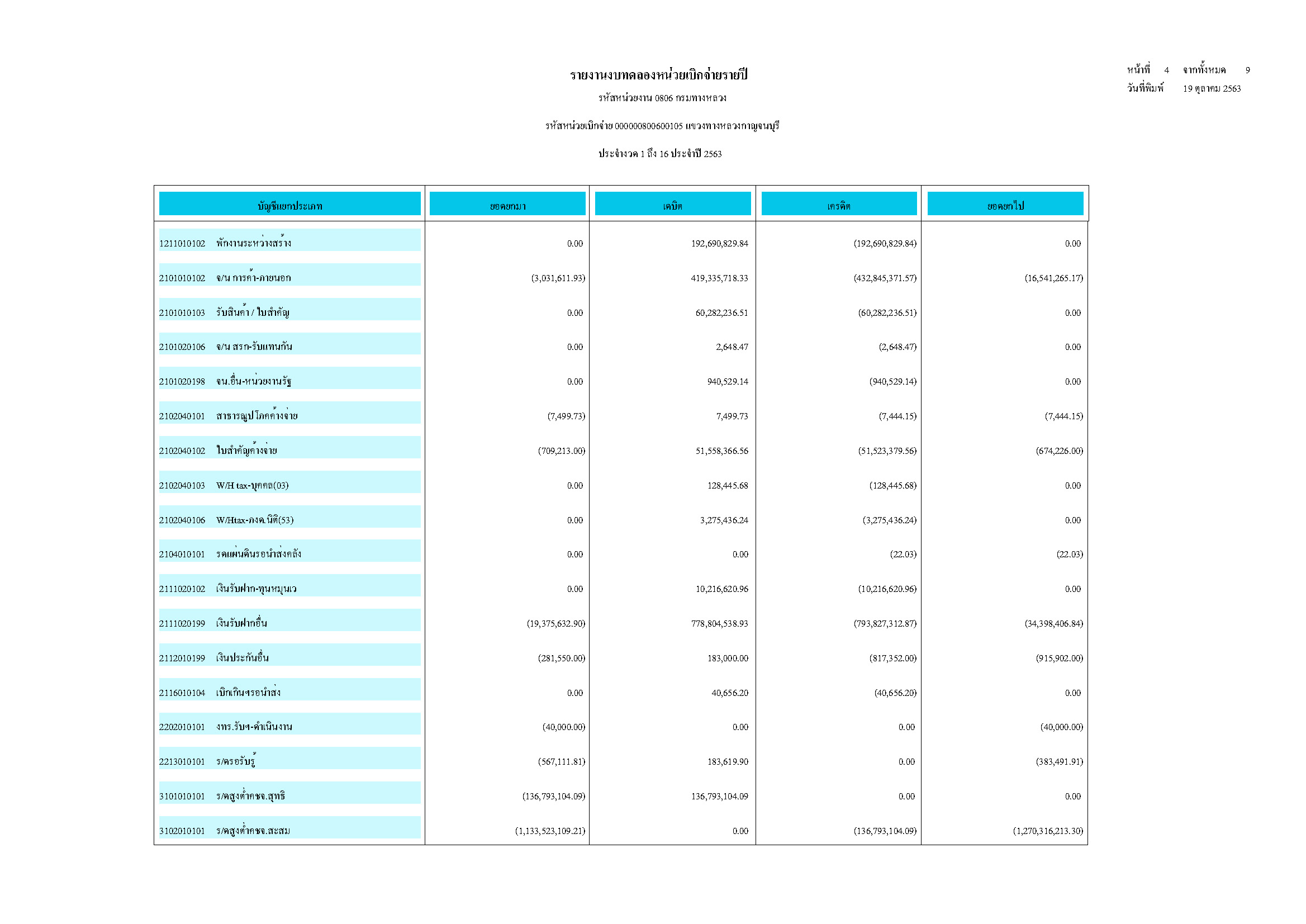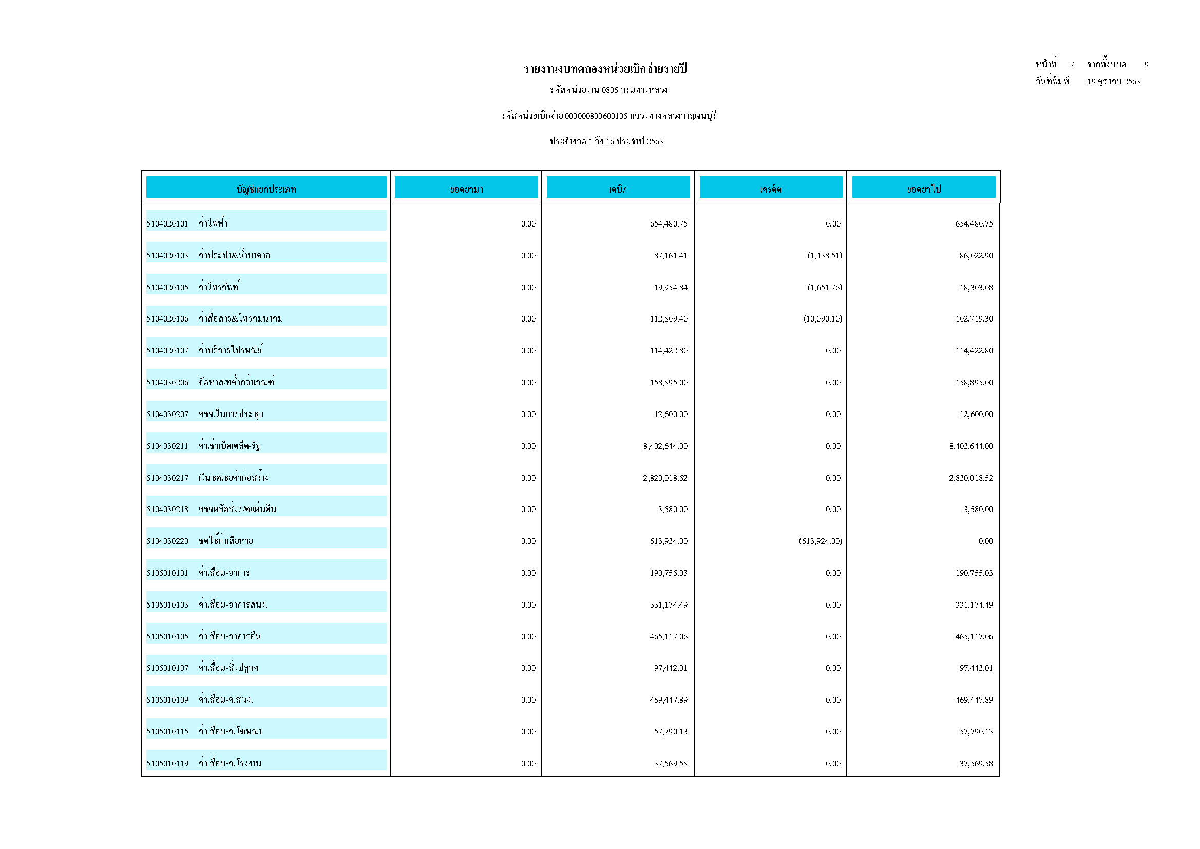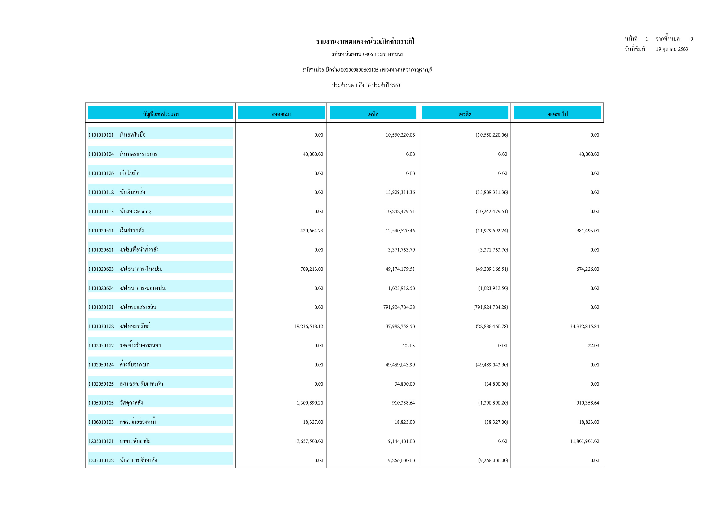 รายงานงบทดลองหน่วยเบิกจ่ายรายปี ประจำงวด 1 ถึง 16 ประจำปีที่ 2563