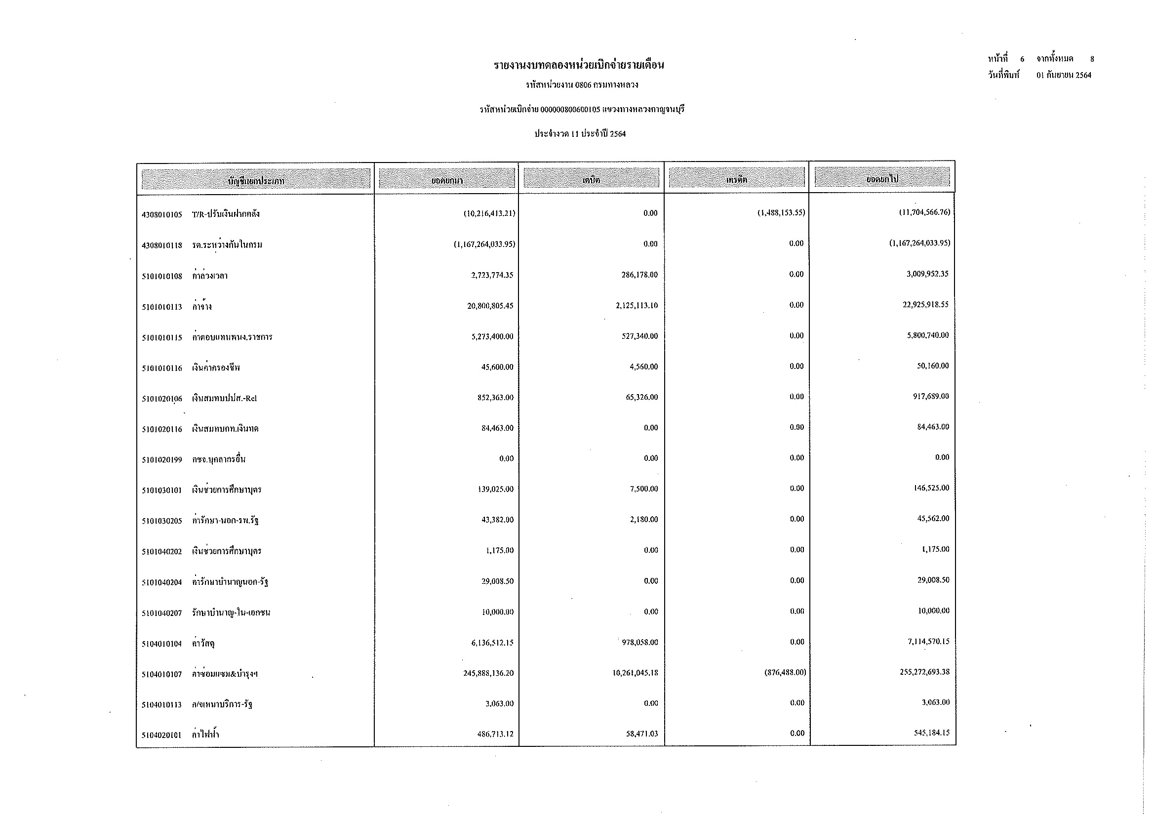 รายงานงบทดลองหน่วยเบิกจ่ายรายเดือน ประจำงวด 11 ประจำปีที่ 2564