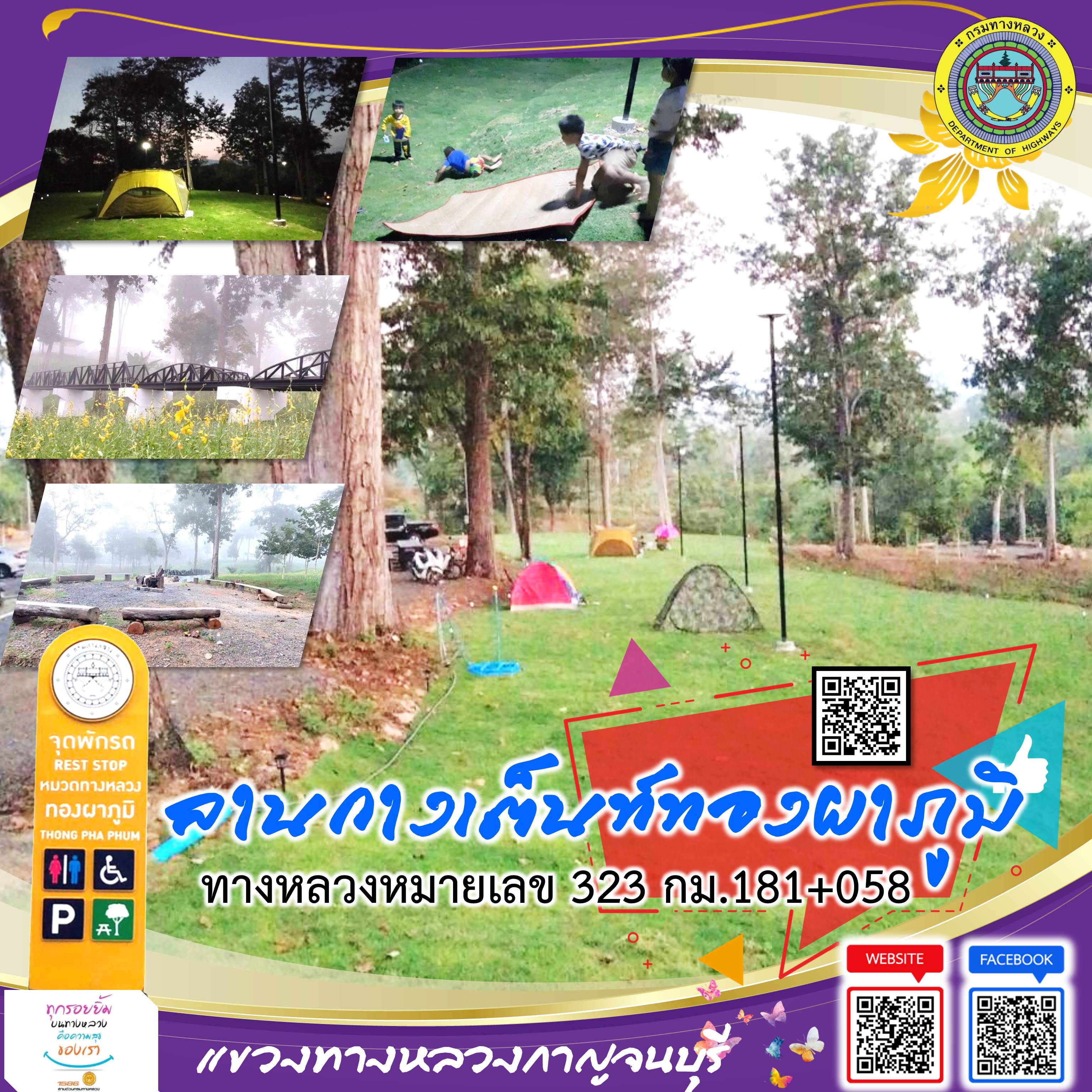 แขวงทางหลวงกาญจนบุรี ได้จัดเตรียมจุดบริการลานกางเต็นท์ จุดพักรถ ห้องน้ำ