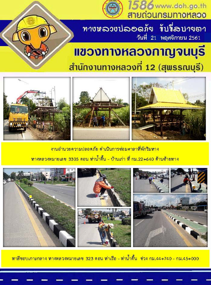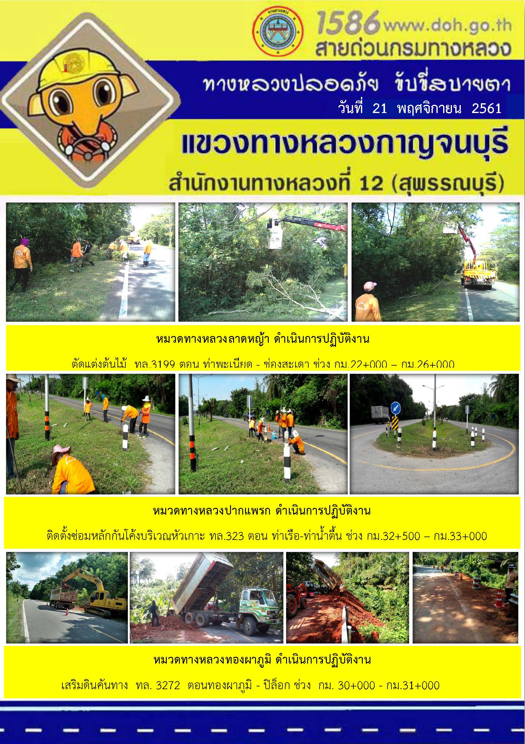 ข้อมูลข่าว : งานอำนวยความสะดวกและความปลอดภัย โดยแขวงทางหลวงกาญจนบุรี 21/11/61