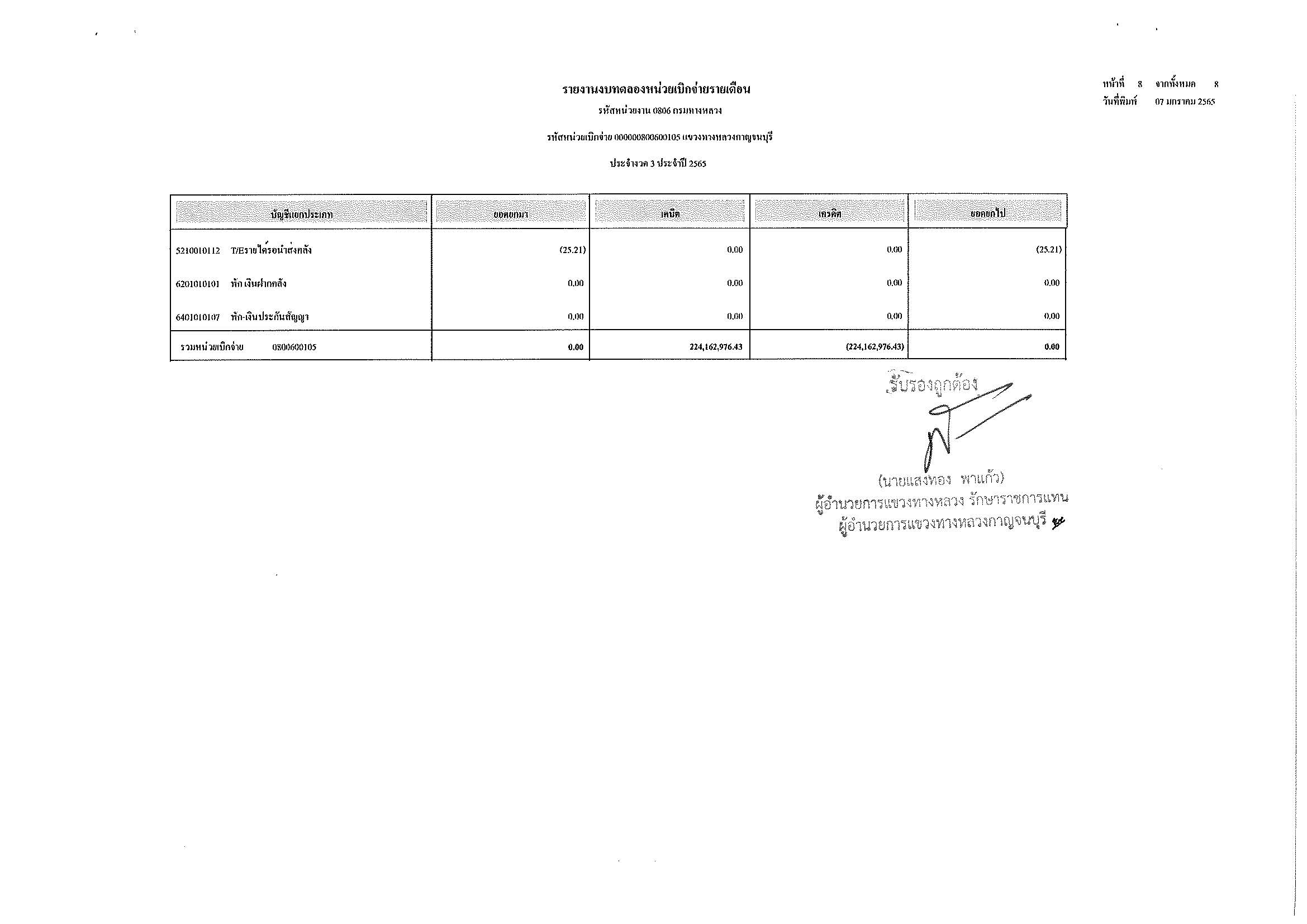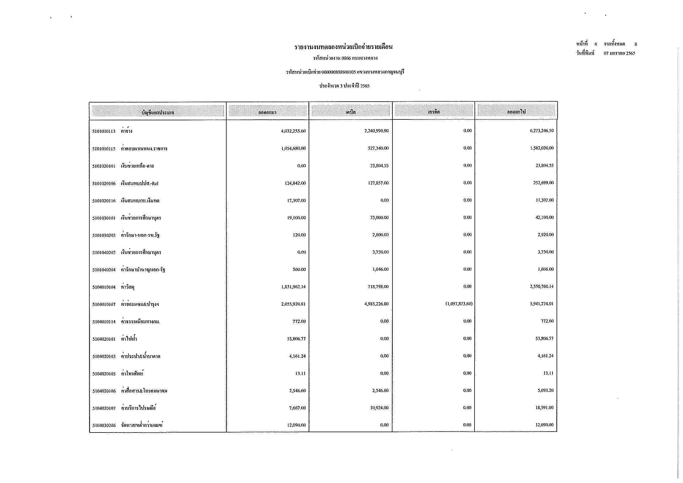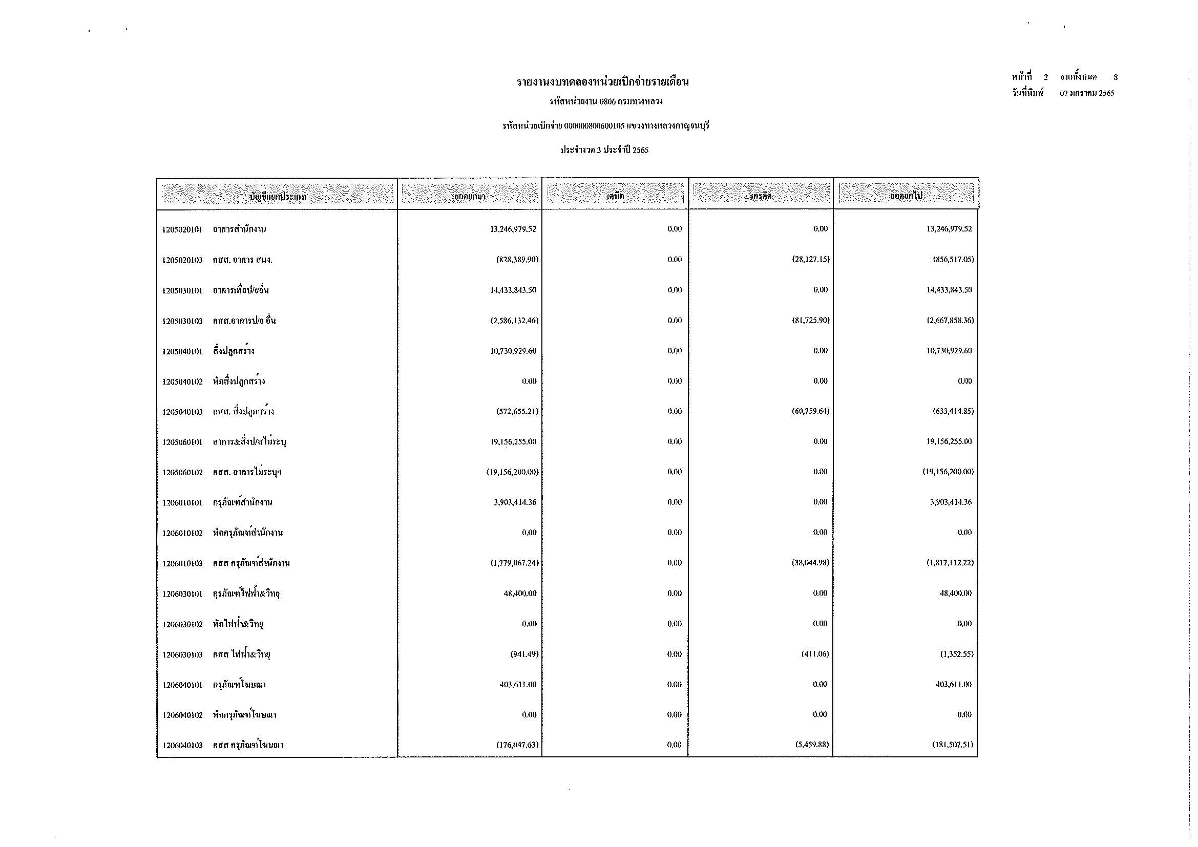 รายงานงบทดลองหน่วยเบิกจ่ายรายเดือน ประจำงวด 3 ประจำปีที่ 2565