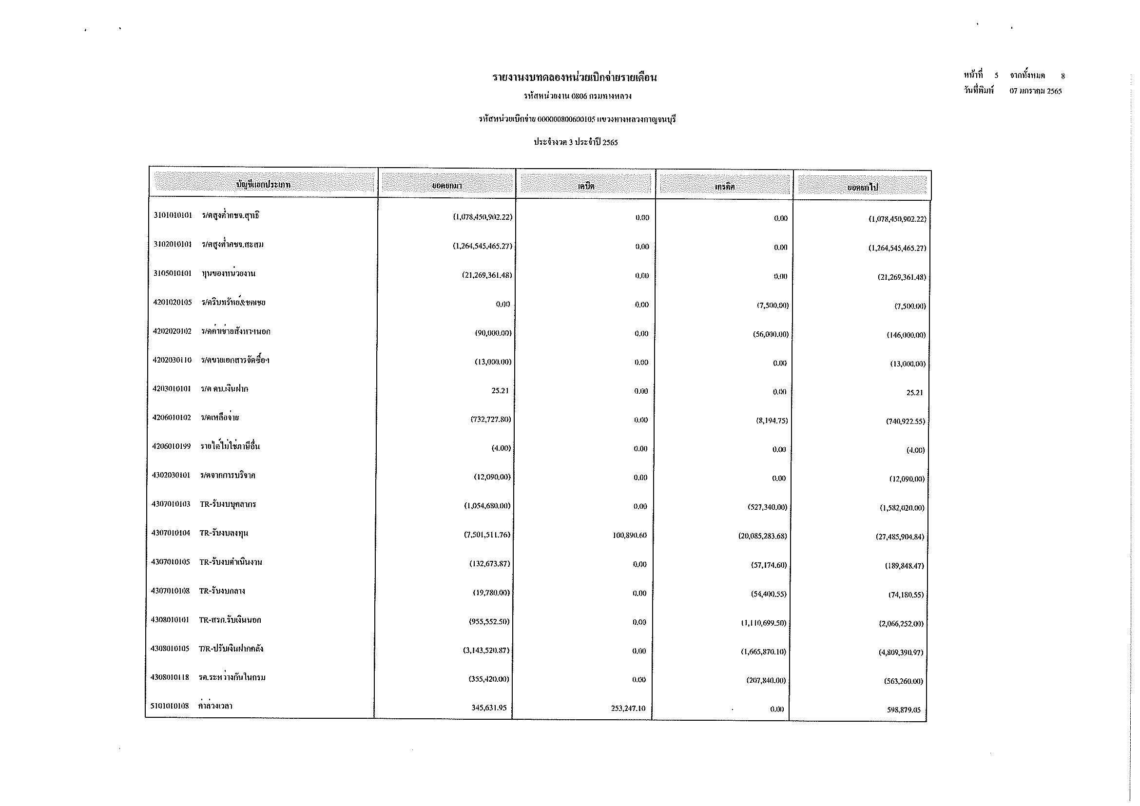 ข้อมูลข่าว : รายงานงบทดลองหน่วยเบิกจ่ายรายเดือน ประจำงวด 3 ประจำปีที่ 2565