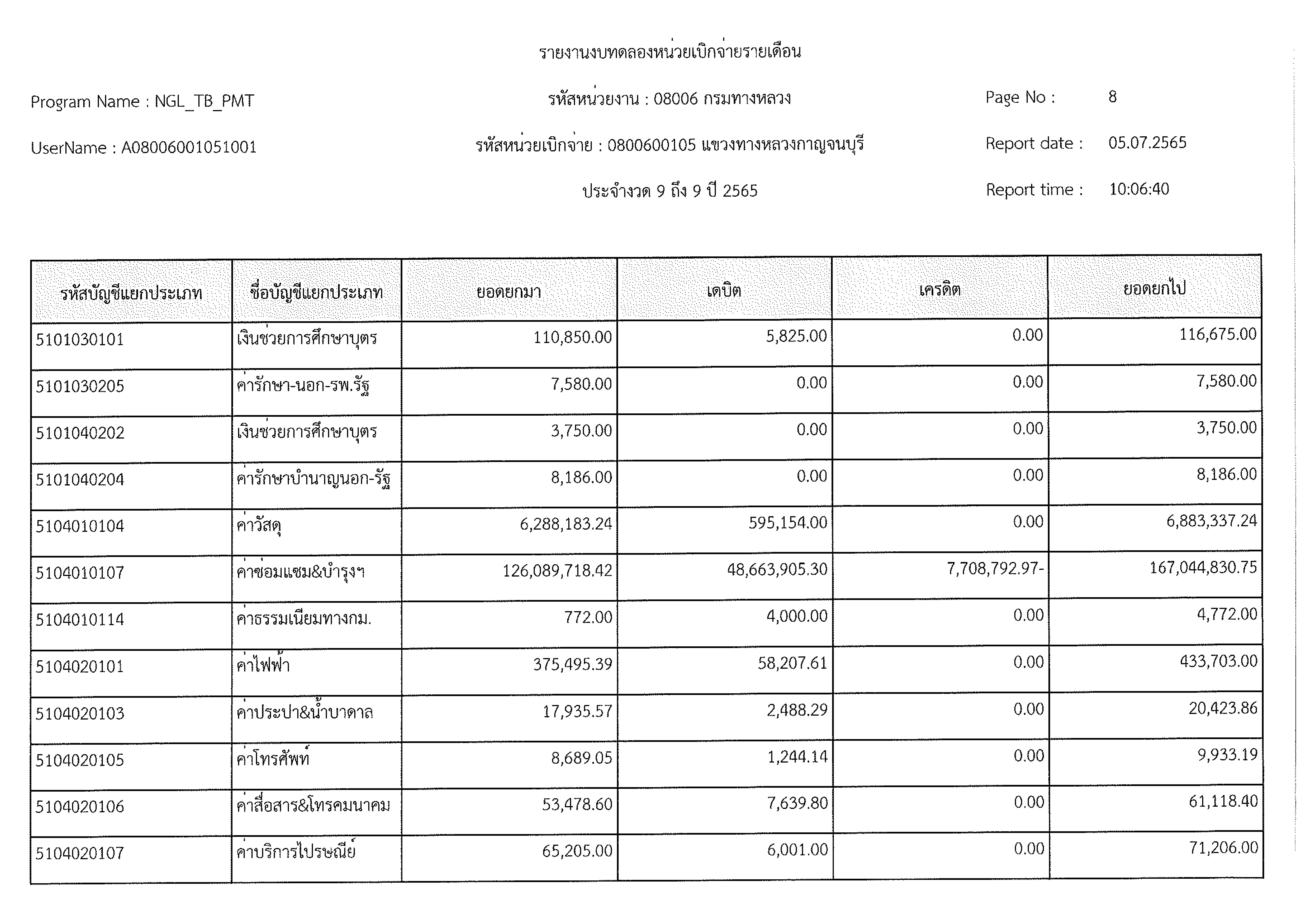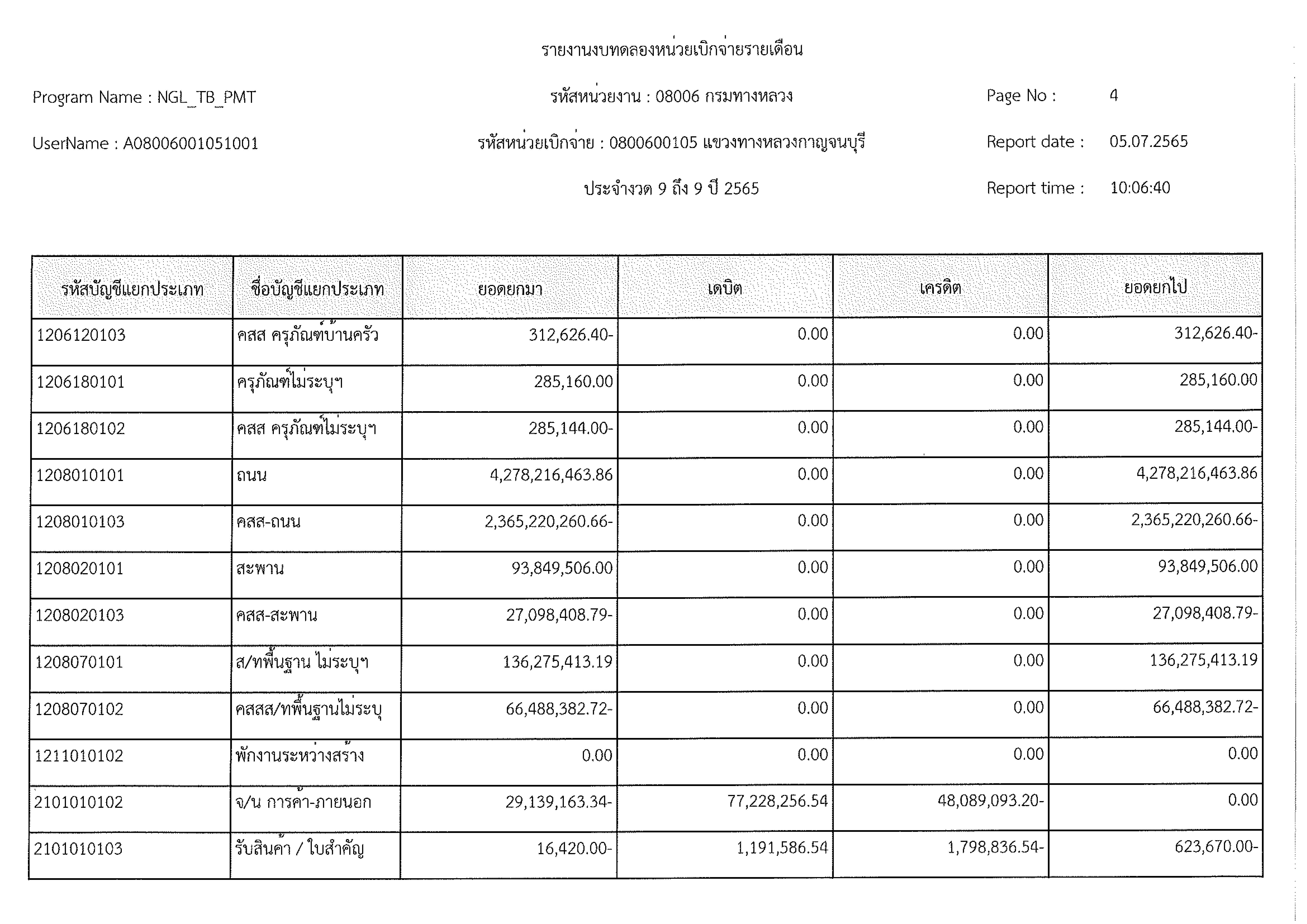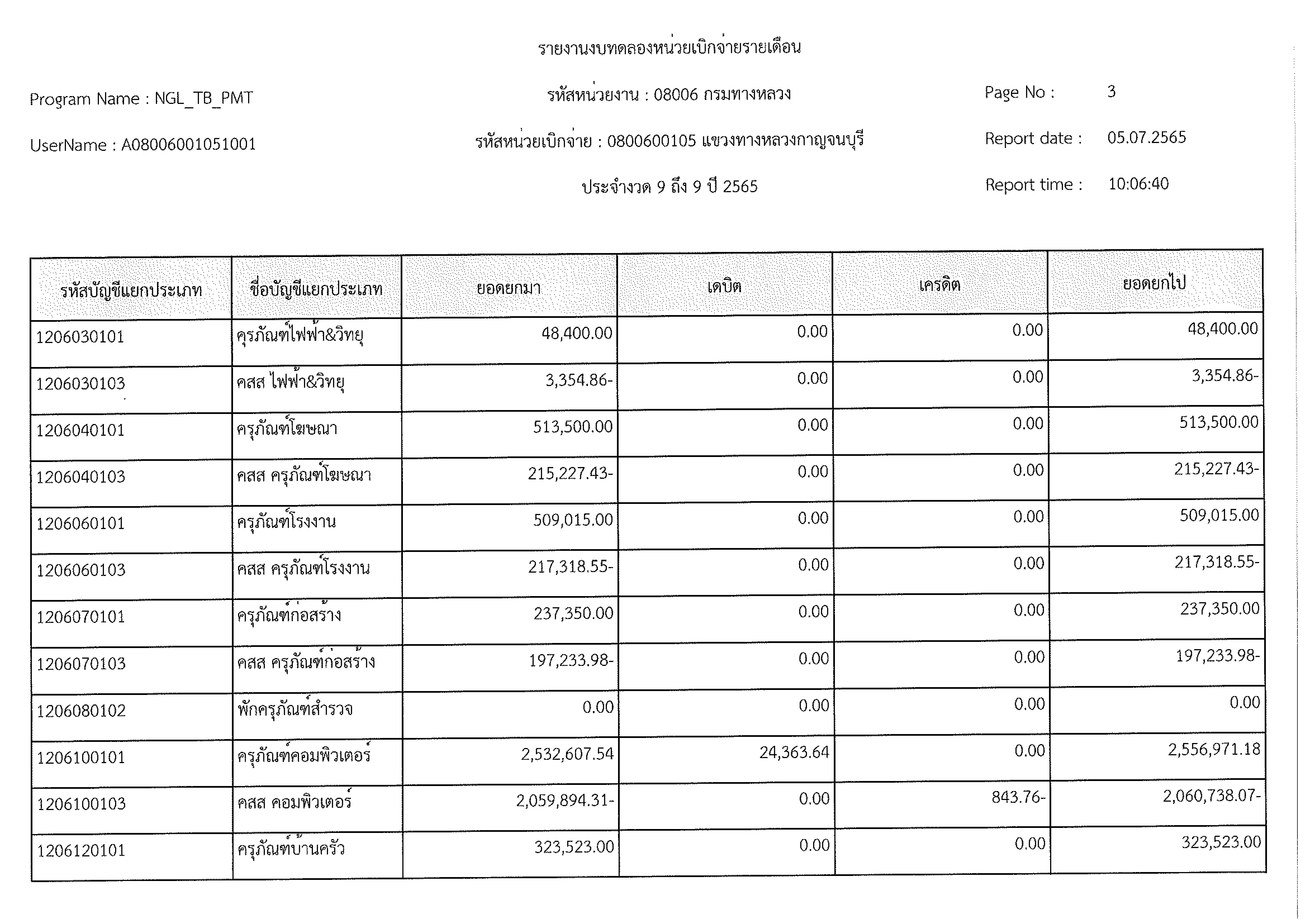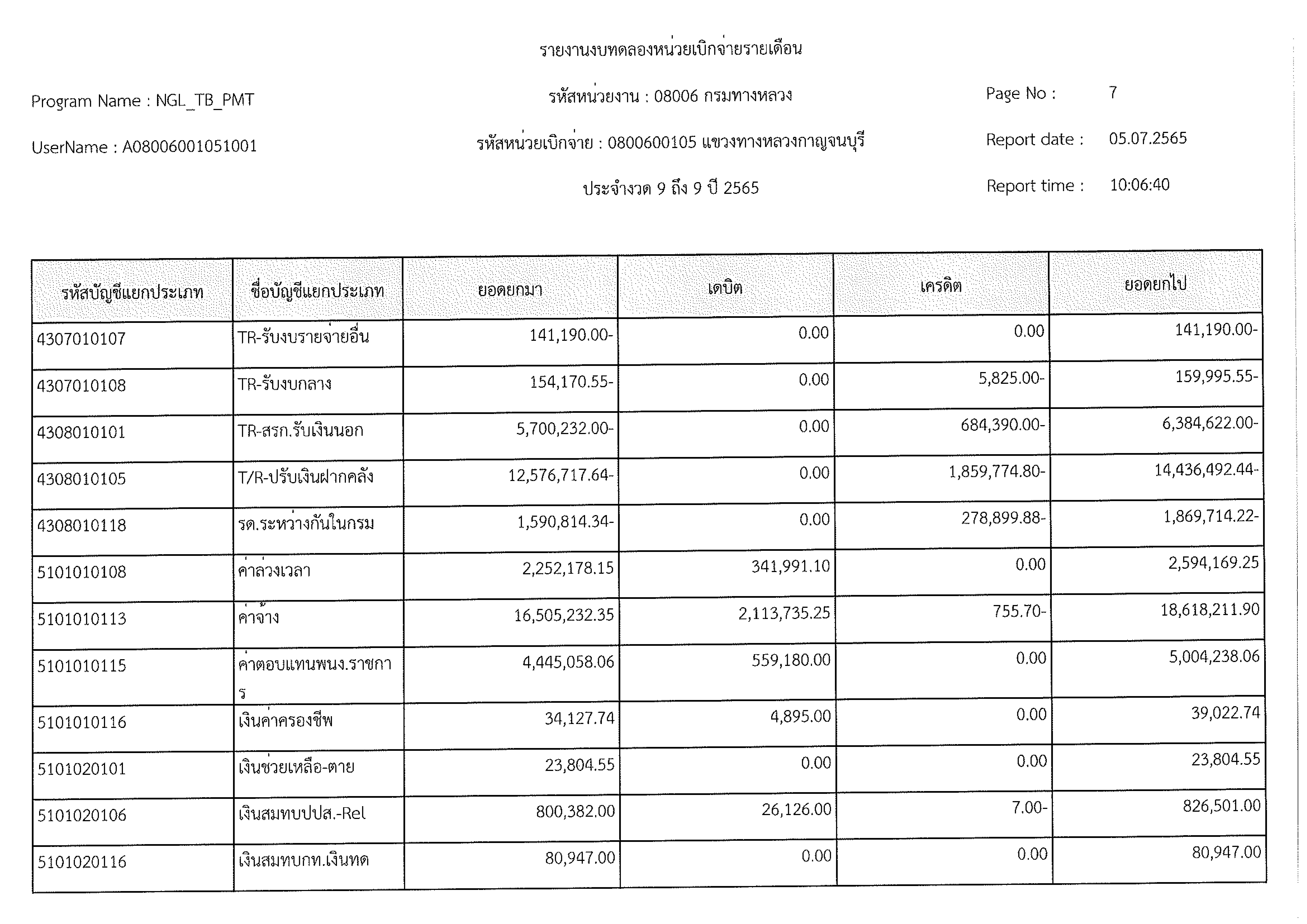 รายงานงบทดลองหน่วยเบิกจ่ายรายเดือน ประจำงวด 9 ประจำปีที่ 2565
