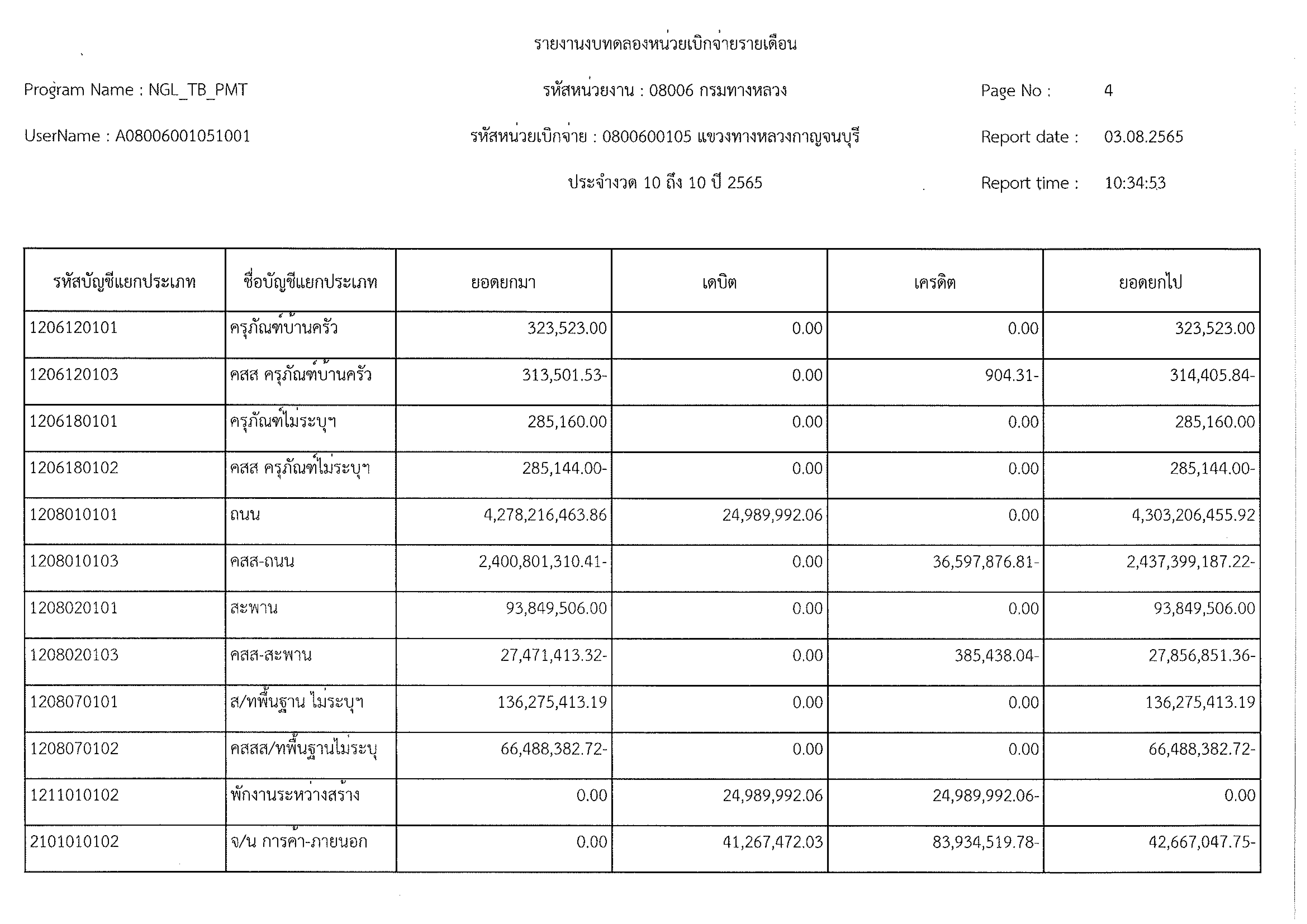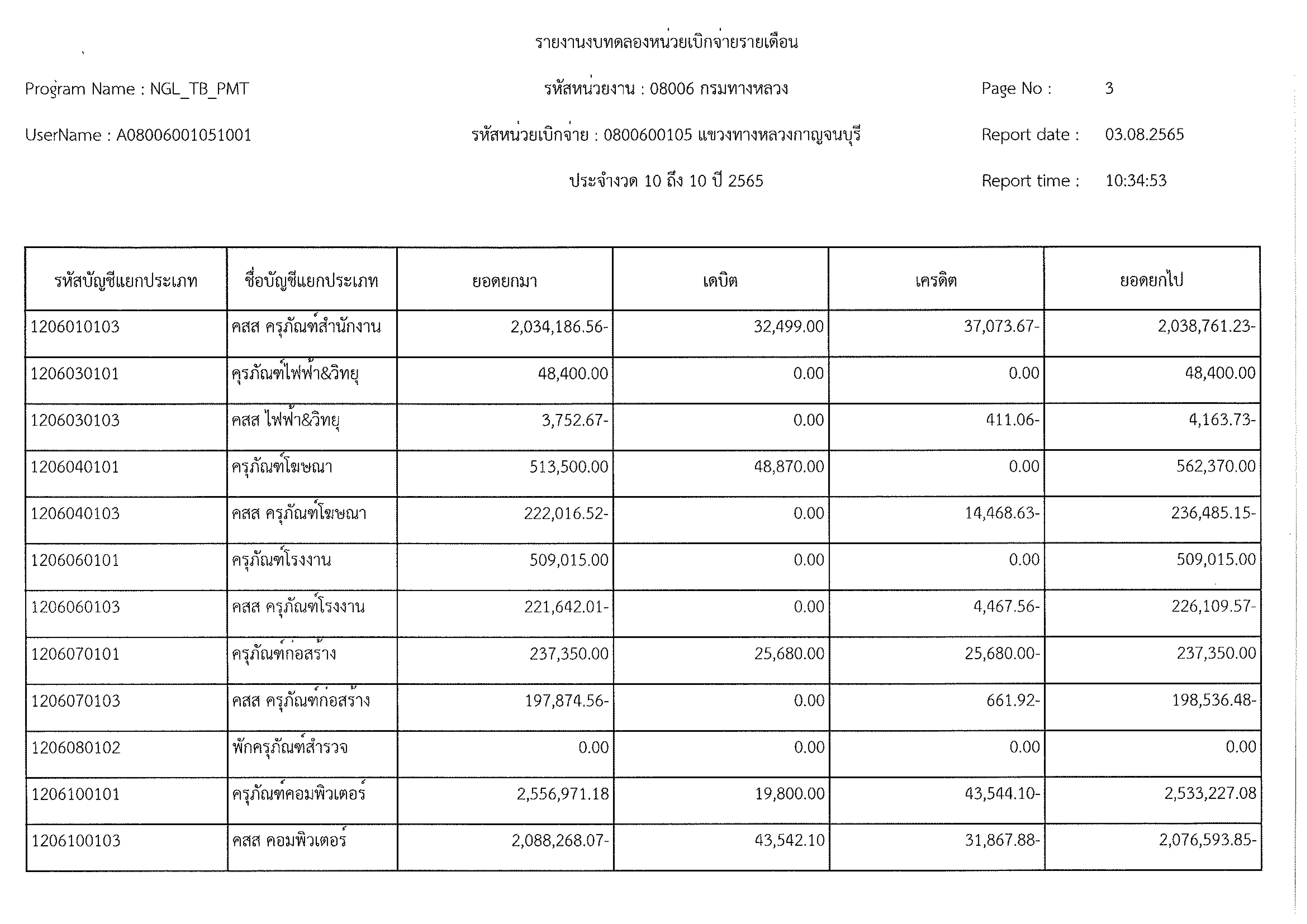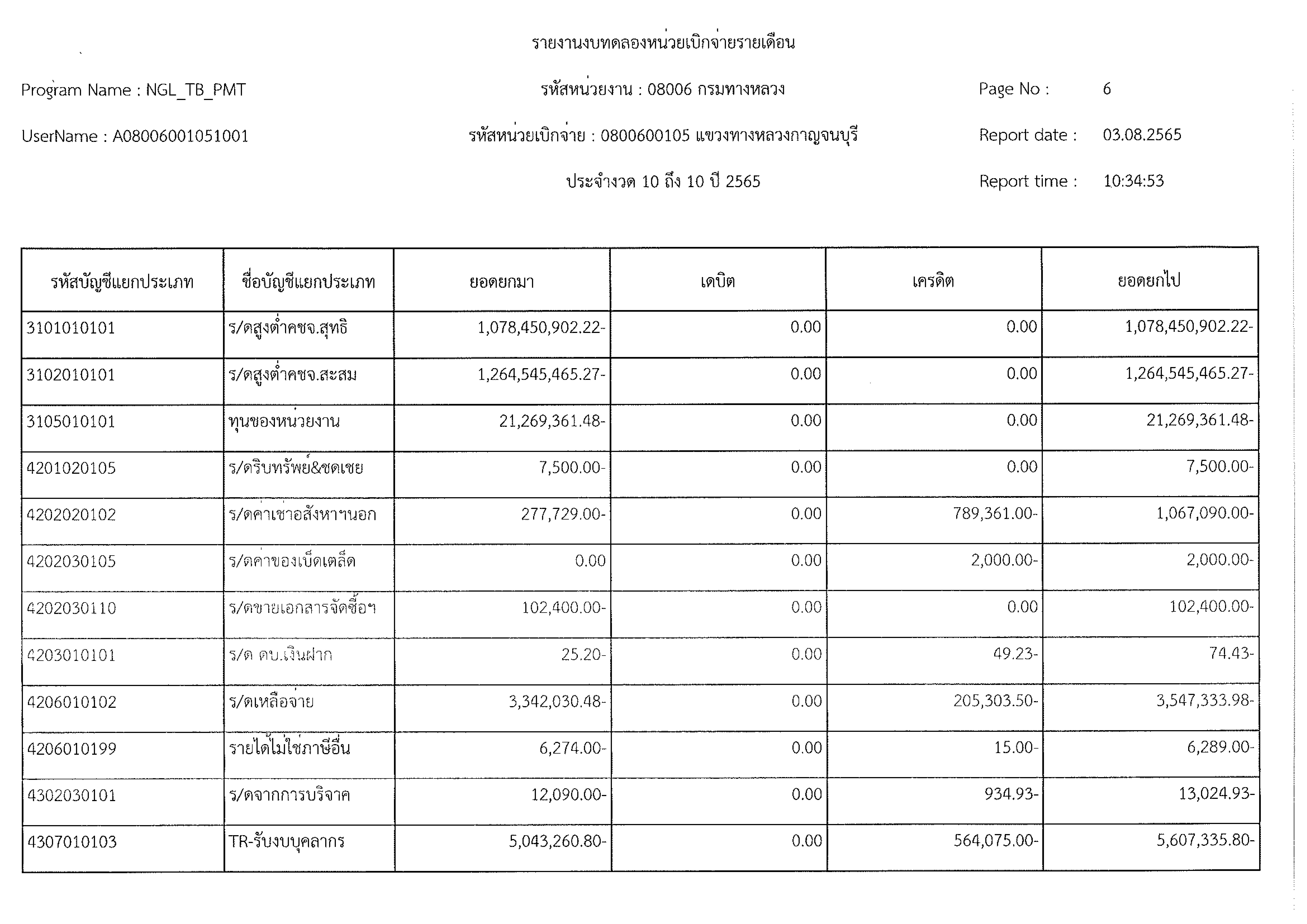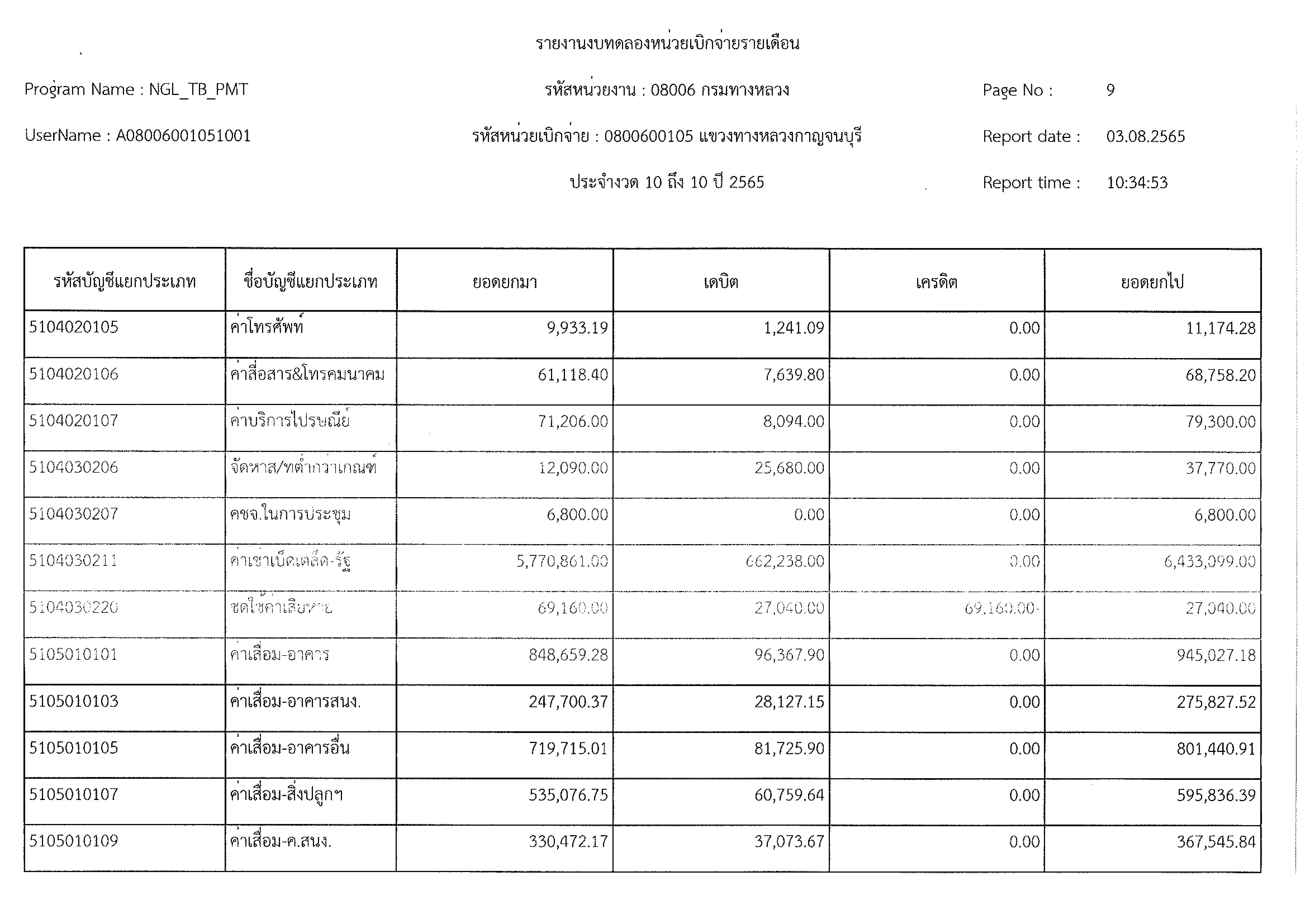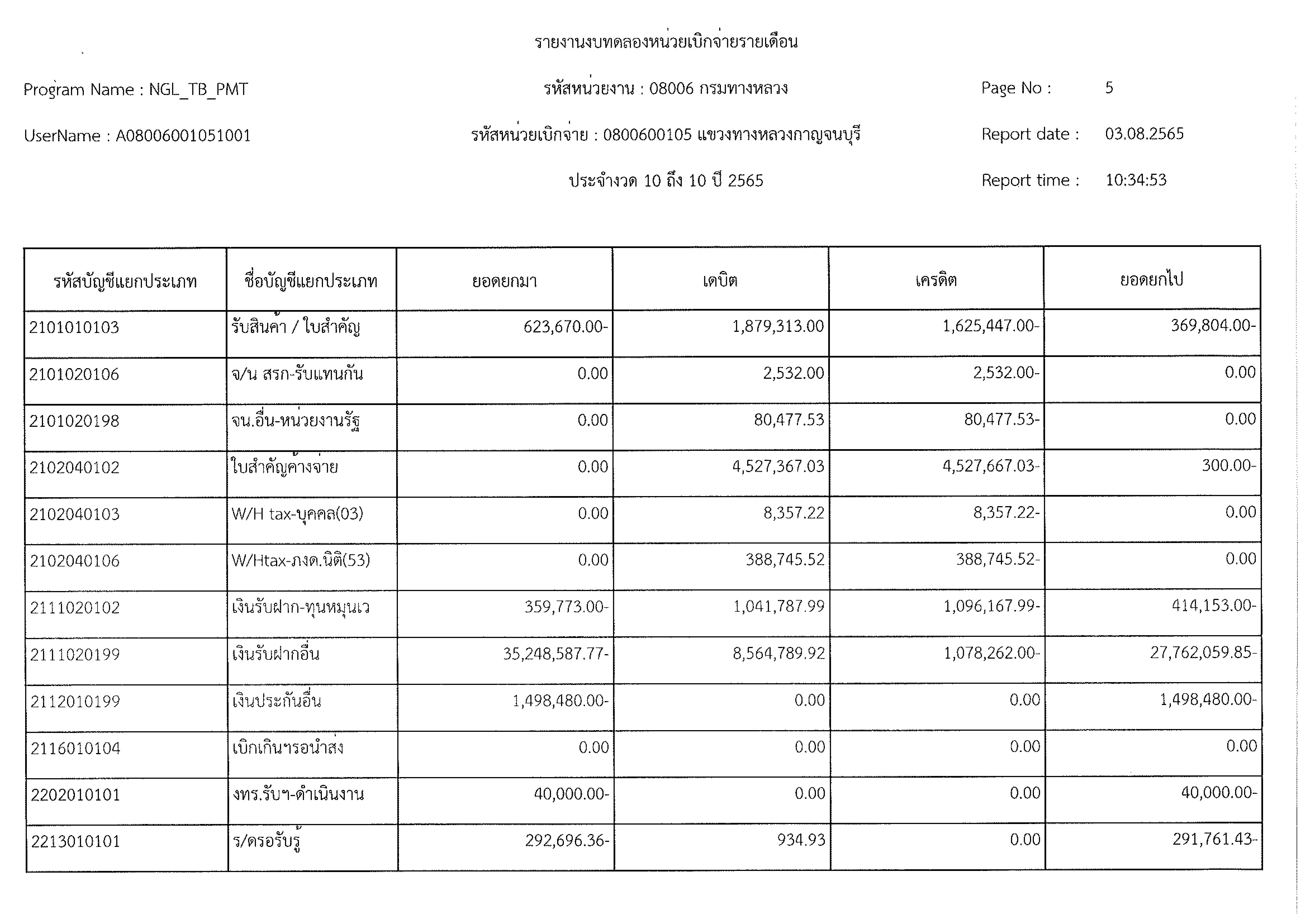 รายงานงบทดลองหน่วยเบิกจ่ายรายเดือน ประจำงวด 10 ประจำปีที่ 2565