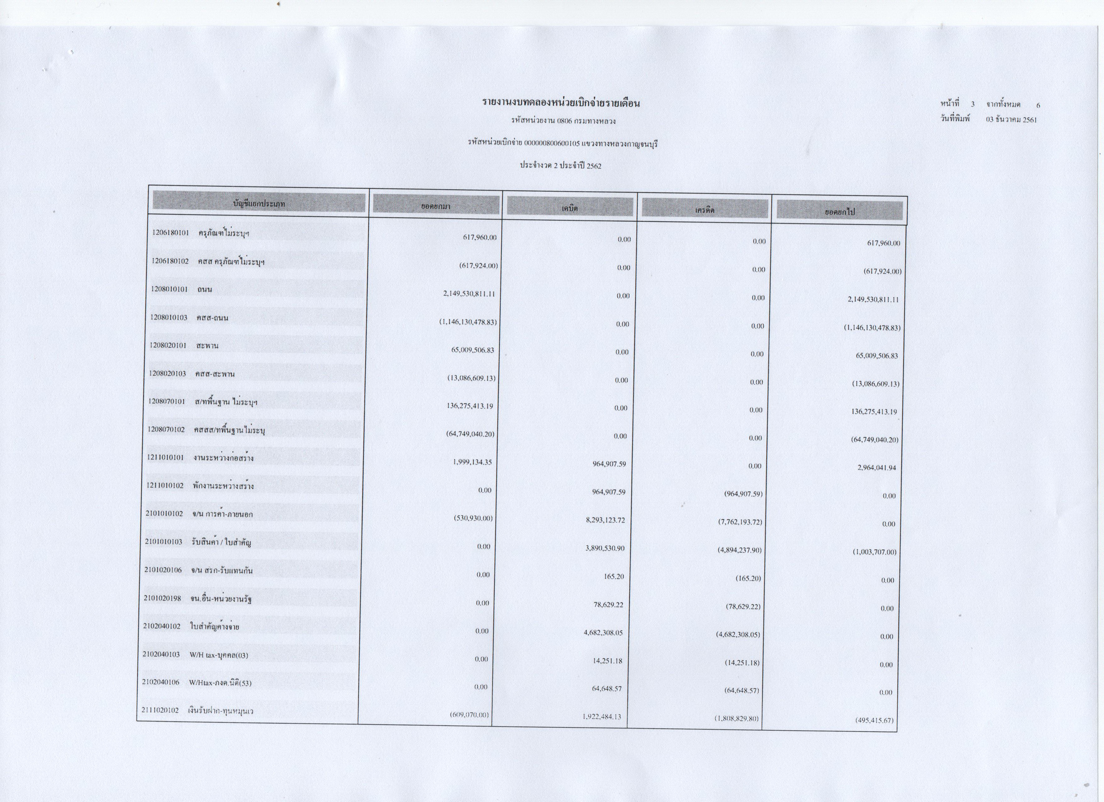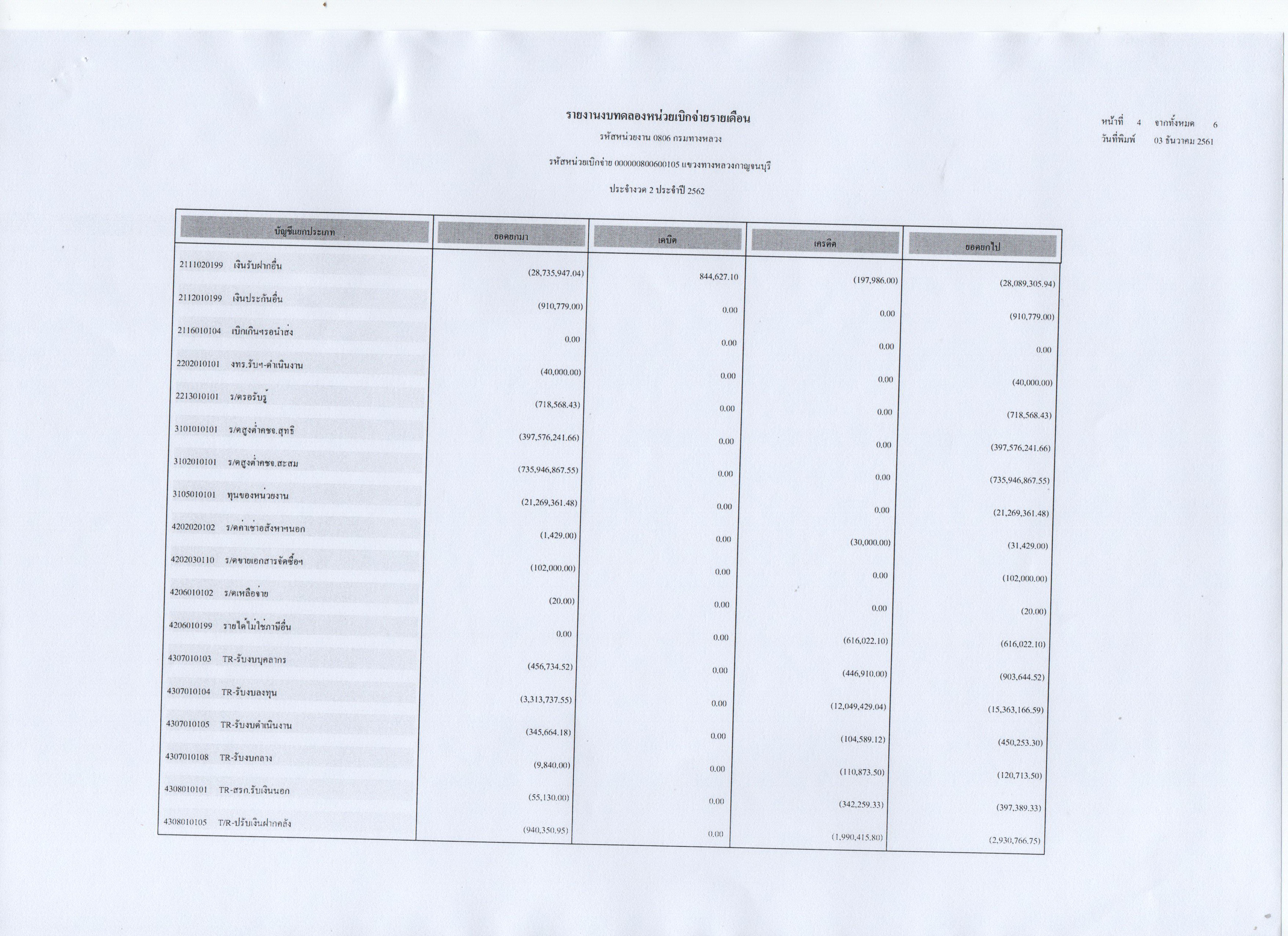 รายงานงบทดลองหน่วยเบิกจ่ายรายเดือน ประจำงวดที่ 2 ประจำปี 2562