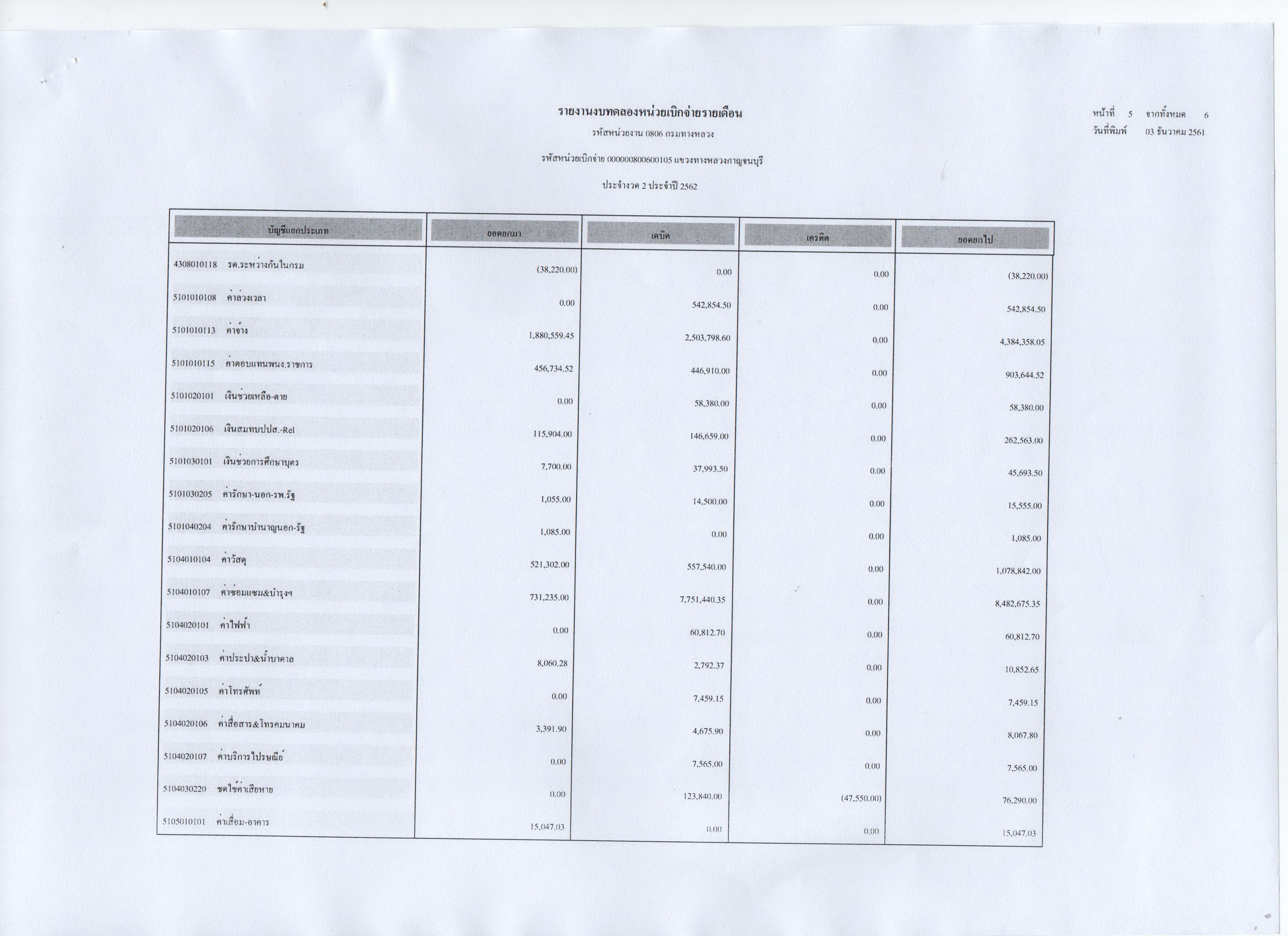 ข้อมูลข่าว : รายงานงบทดลองหน่วยเบิกจ่ายรายเดือน ประจำงวดที่ 2 ประจำปี 2562