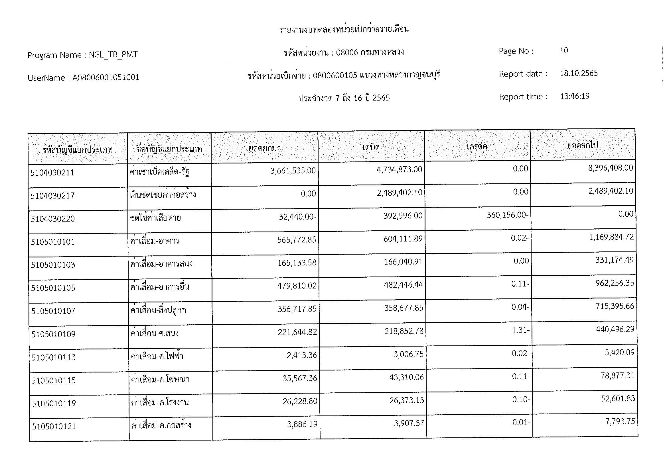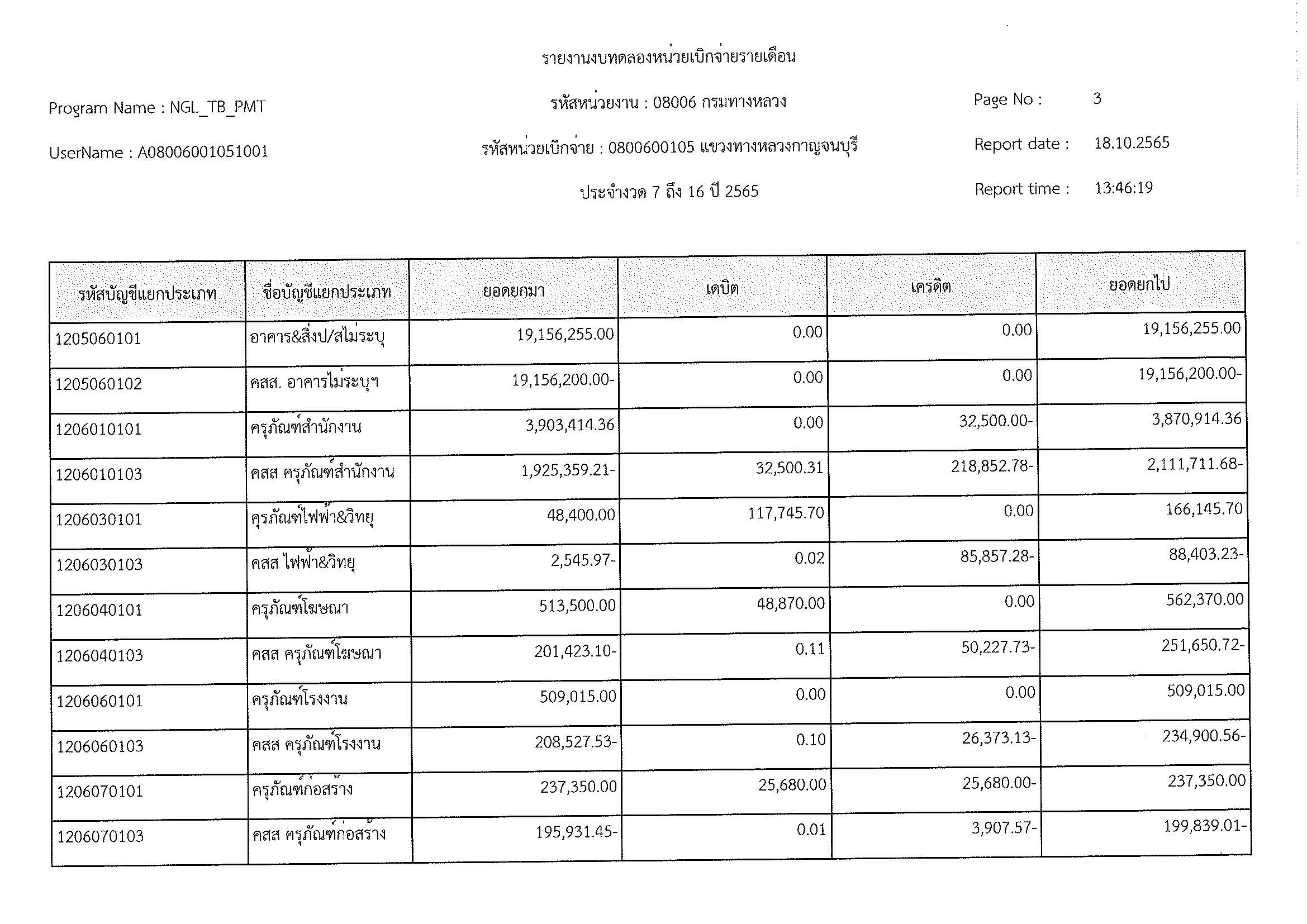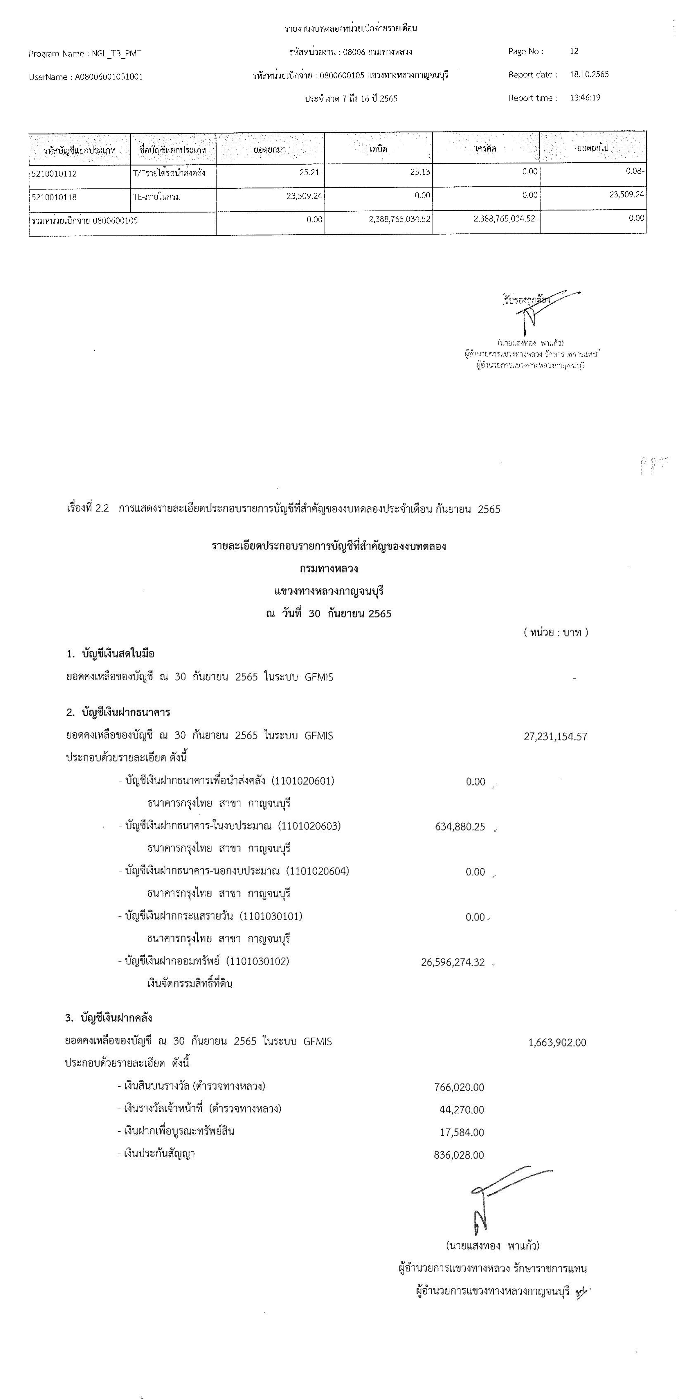 รายงานงบทดลองหน่วยเบิกจ่ายรายเดือน ประจำงวด 12 ประจำปีที่ 2565